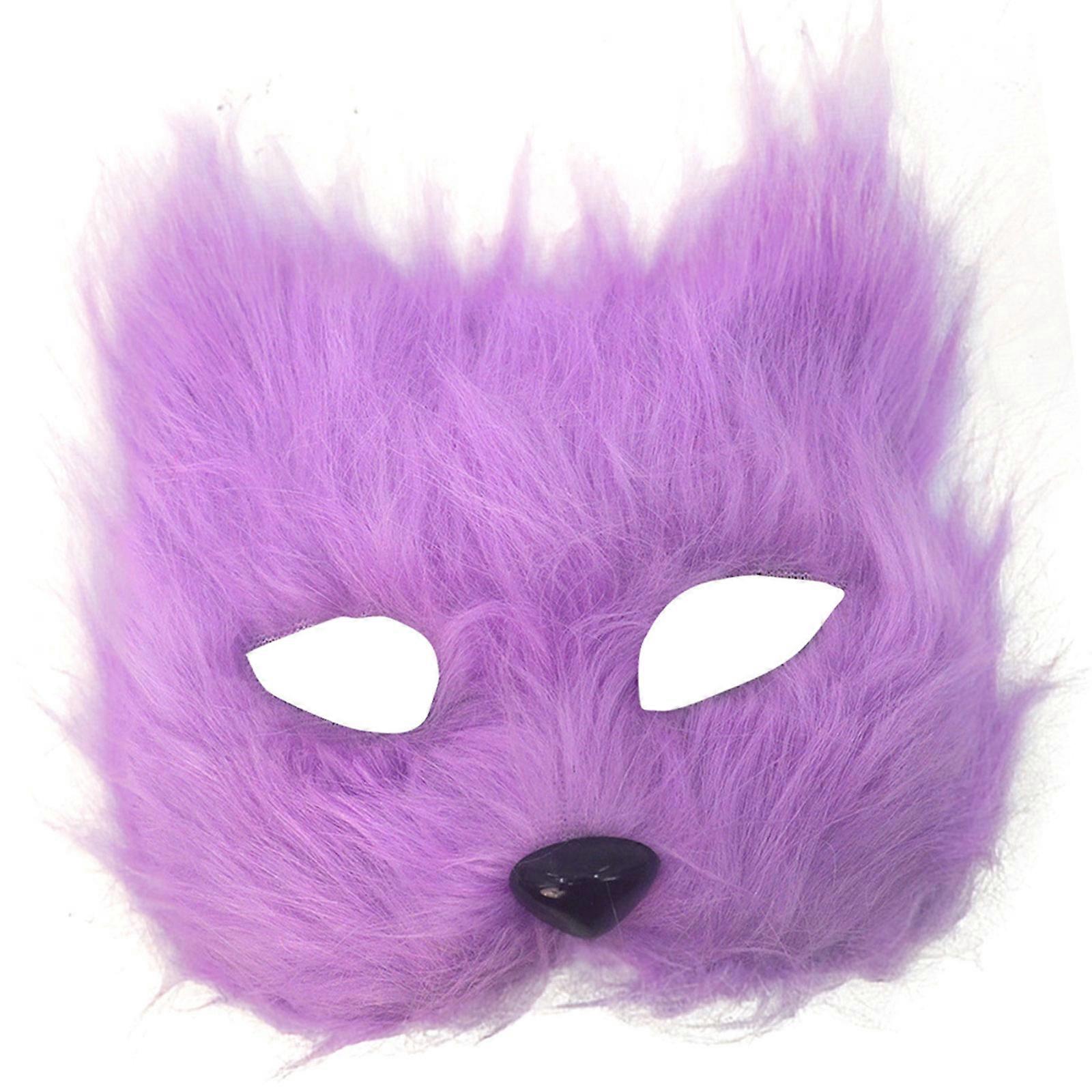 Partial Face Foxes Mask Realistic Furry Texture Costume Accessory For Halloween Role Play Themed Parties And Photography Purple