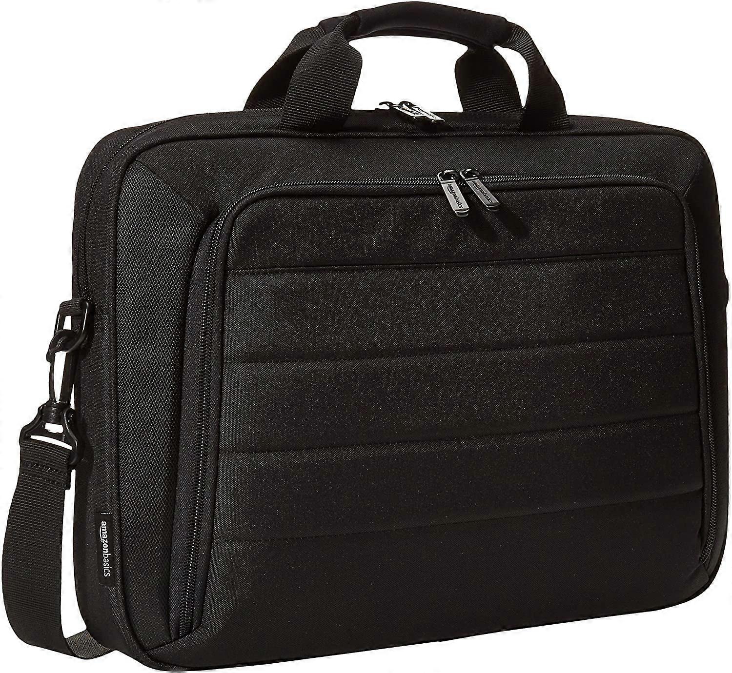 Designed for a 17.3-inch laptop or for laptops and tablets smaller than 18 x 1.5 x 12 inches (LxWxH). Zippered back pocket keeps a smartphone within reach; front pocket with organization panel Carry handles and removable shoulder strap; p-through strap for attaching to handle of rolling luggage Made of durable polyester; stylish black color; external measurements are 18.3 x 2 x 12.3 inches (LxWxH) Backed by an AmazonBasics one year warranty 17.3 Inch Laptop and Tablet Case Shoulder Bag, Black Electronics › Computers & Accessories › Accessories › Laptop & Netbook Computer Accessories › Bags, Cases & Sleeves › Briefcases Electronics › Computers & Accessories › Accessories › Laptop & Netbook Computer Accessories › Bags, Cases & Sleeves › Briefcases Electronics › Computers & Accessories › Accessories › Laptop & Netbook Computer Accessories › Bags, Cases & Sleeves › Briefcases Electronics › Computers & Accessories › Accessories › Laptop & Netbook Computer Accessories › Bags, Cases & Sleeves › Briefcases