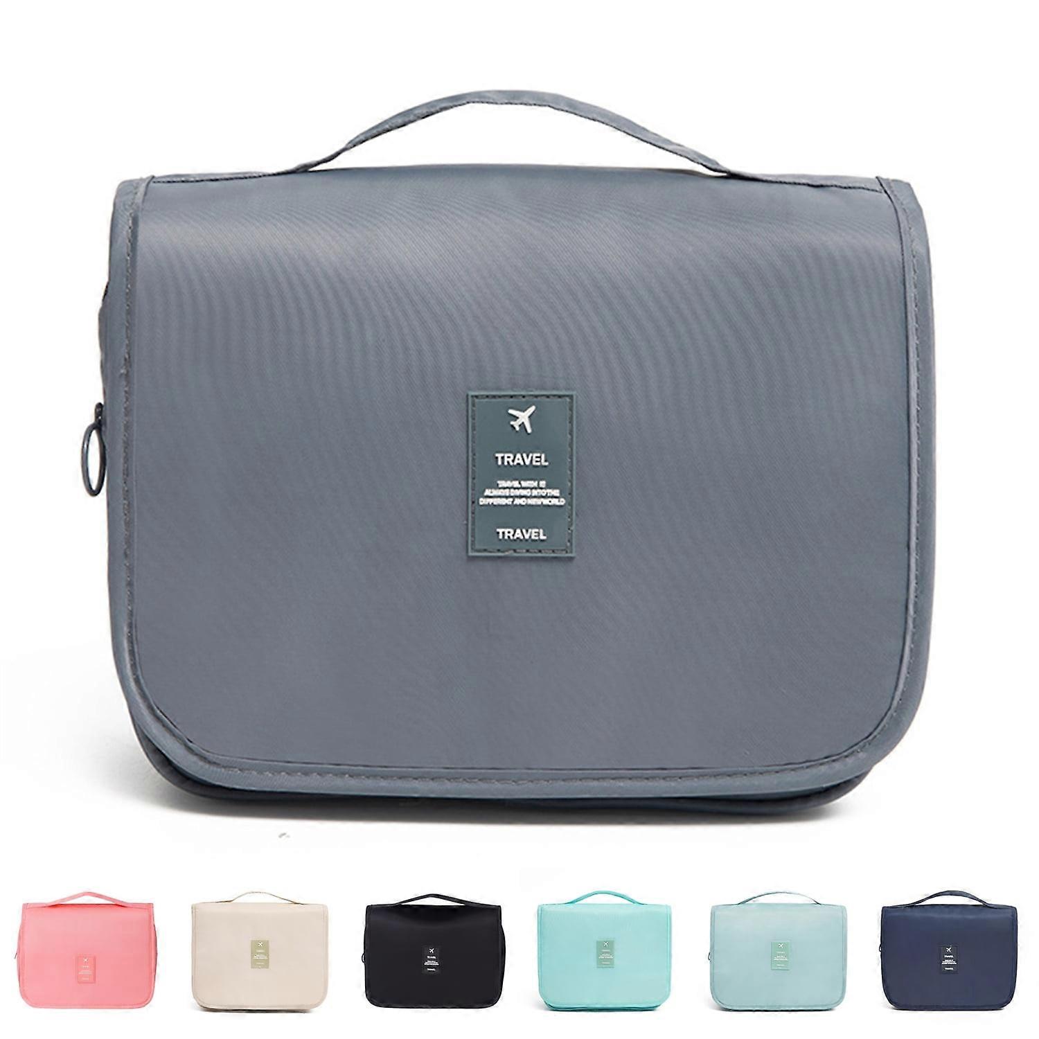 Waterproof Portable Toiletry Bag with Hook, Hanging Travel Wash Case, Large Cosmetic Organizer for Women Men (Gray)