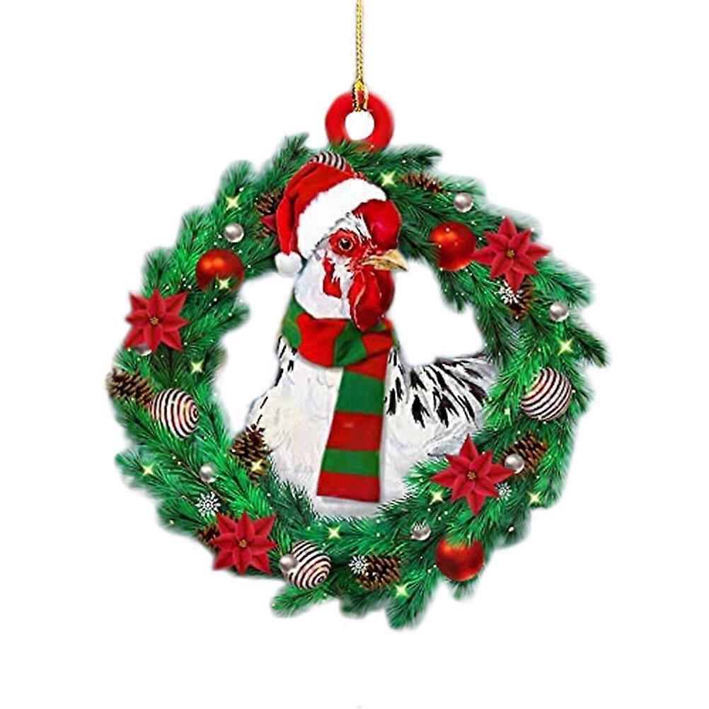 Tssuoun Christmas Pendant Chicken with Christmas Hat Scarf Christmas Tree Hanging Ornament Holiday Party Decoration