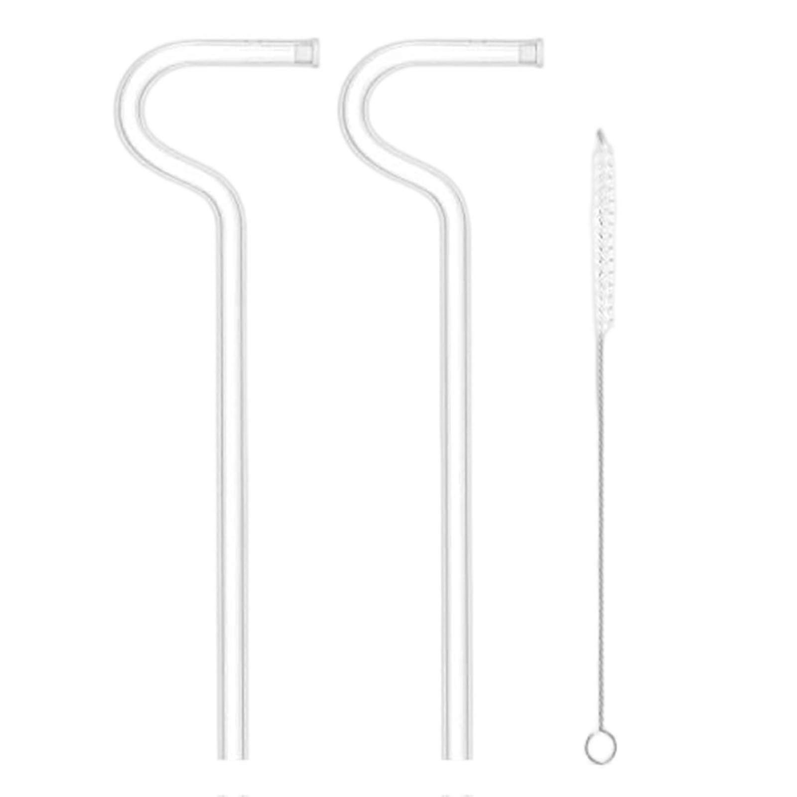 Flexible Anti-Wrinkle Drinking Straws, 2Pcs Reusable Glass Straws with Curved Lip, Compatible with Cup