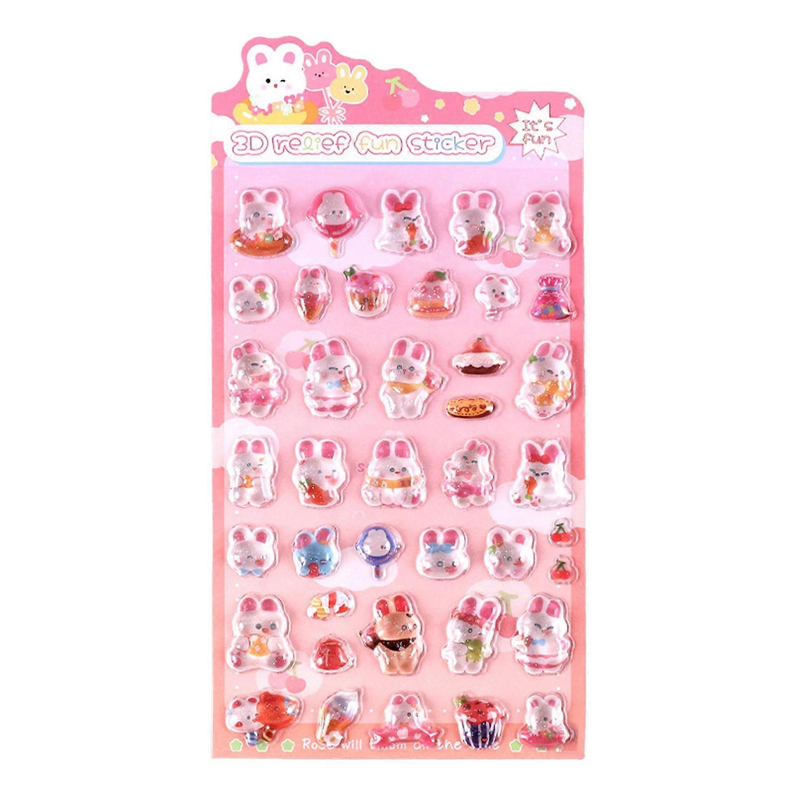 3D Panda Bunny Puffy Stickers Faux Crystal Gem Relief Stickers for Phone Decoration Cute Cartoon Stickers for Kids DIY Crafts