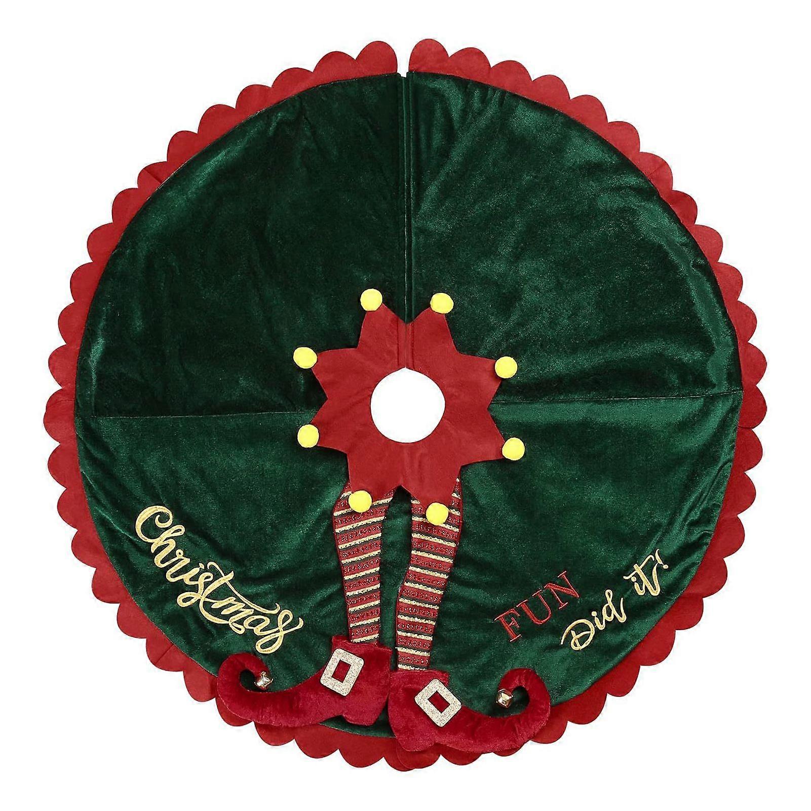 Christmas Tree Skirt with Elf Legs Festive Red Green Decorative Wrap Xmas Holiday Base Cover for Indoor Outdoor Use