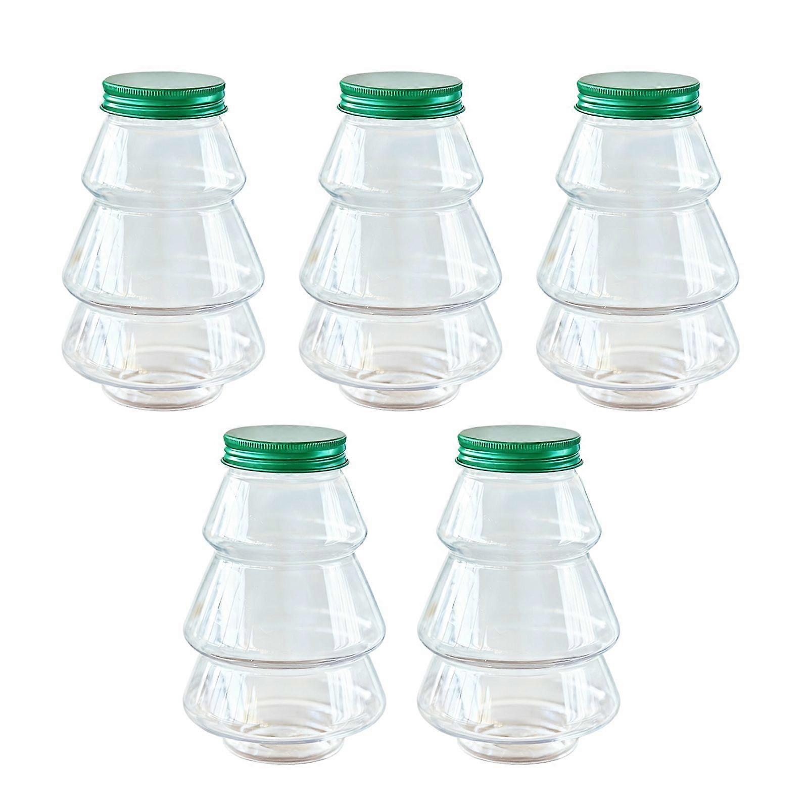 5 Pcs Christmas Tree Candy Jar with Lid Clear Plastic Tree Shaped Chocolate Treat Boxes Empty Beverage Container for Christmas Party Favors