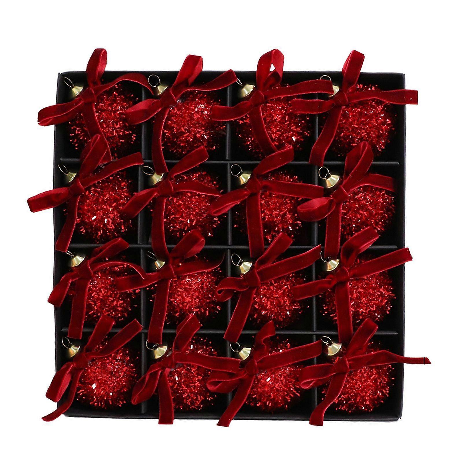 Glitter Christmas Balls Ornament Sparkly Shatterproof Tinsel Balls with Bow Sequin Hanging Ball Xmas Tree Decoration for Xmas Wedding Indoor Outdoor D