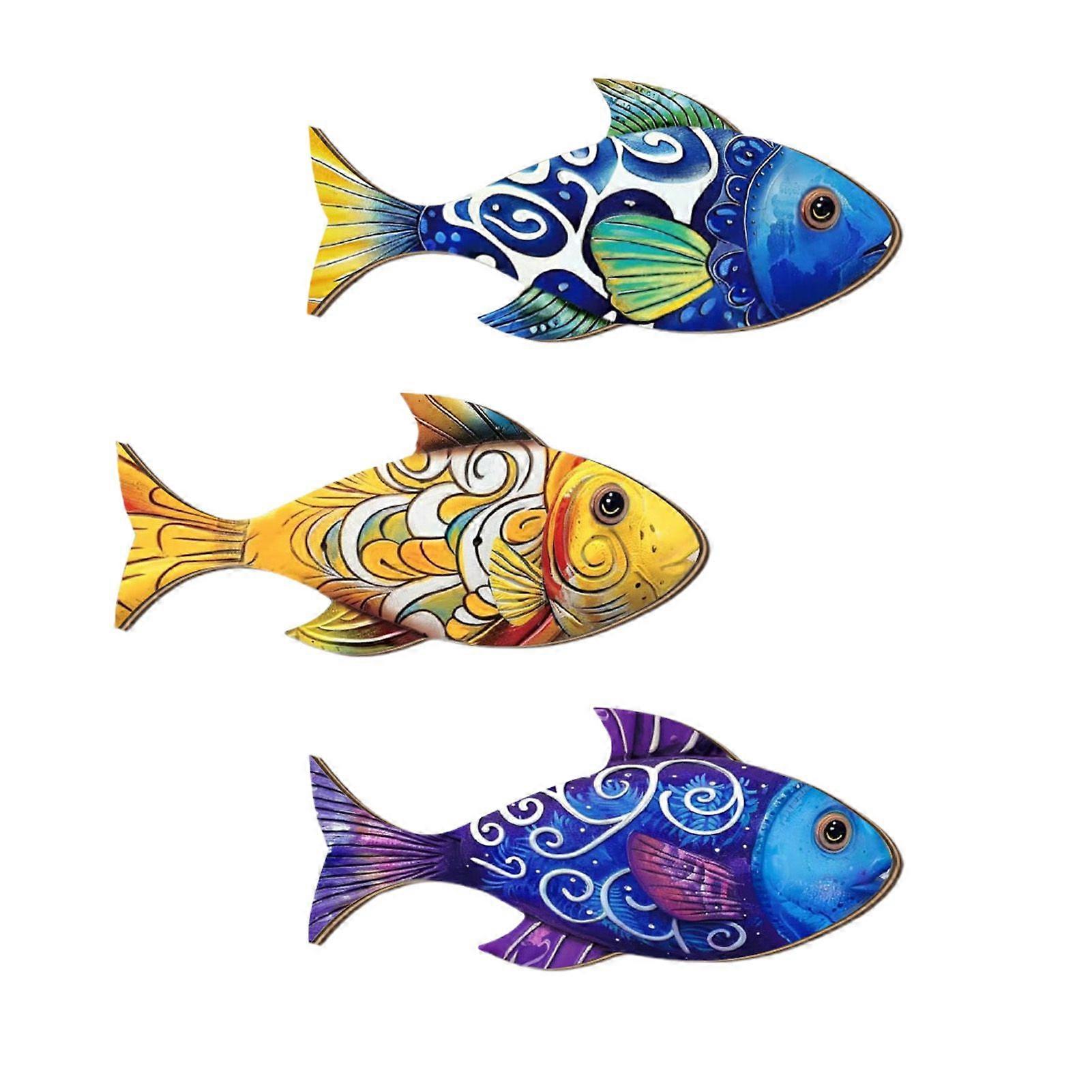 3 Pcs Wooden Fish Wall Art Beach Nautical Coastal Theme Fish Wall Sculpture Rustic Lake House Hanging Decor for Linving Room Bedroom Home Decoration