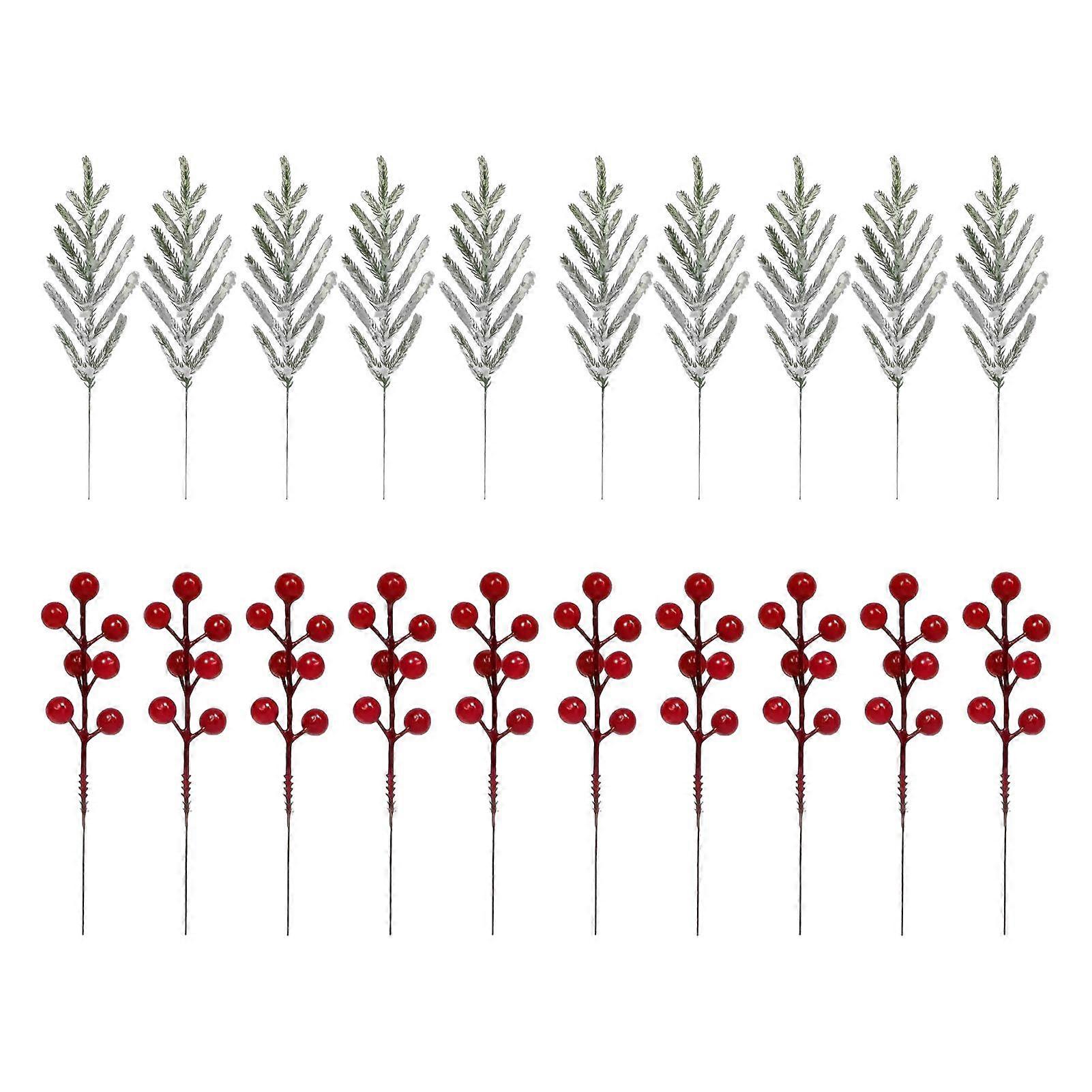 10/20Pcs Artificial Norfolk Pine Branch 13-Fork Faux Greenery Stem Fake Christmas Red Berry Picks DIY Vase Holiday Party Home Decoration