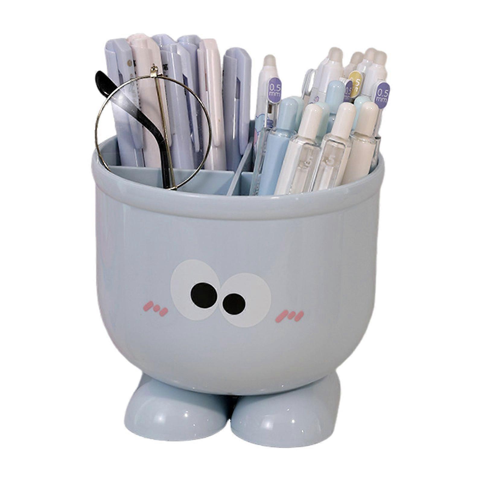 Pen Holder Cartoon Design Macaron Color Desk Organizer Large-capacity Partitioned Desk Caddy Home Office School Decor