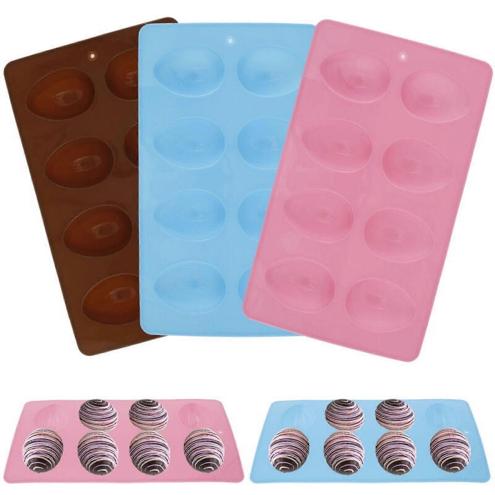 Qenwkxz 3 Packs 8-Cavity Egg Shape Silicone Molds, Reusable Non-Stick Chocolate Easter Egg Mold, Food-Grade for Pastry Muffin Bread