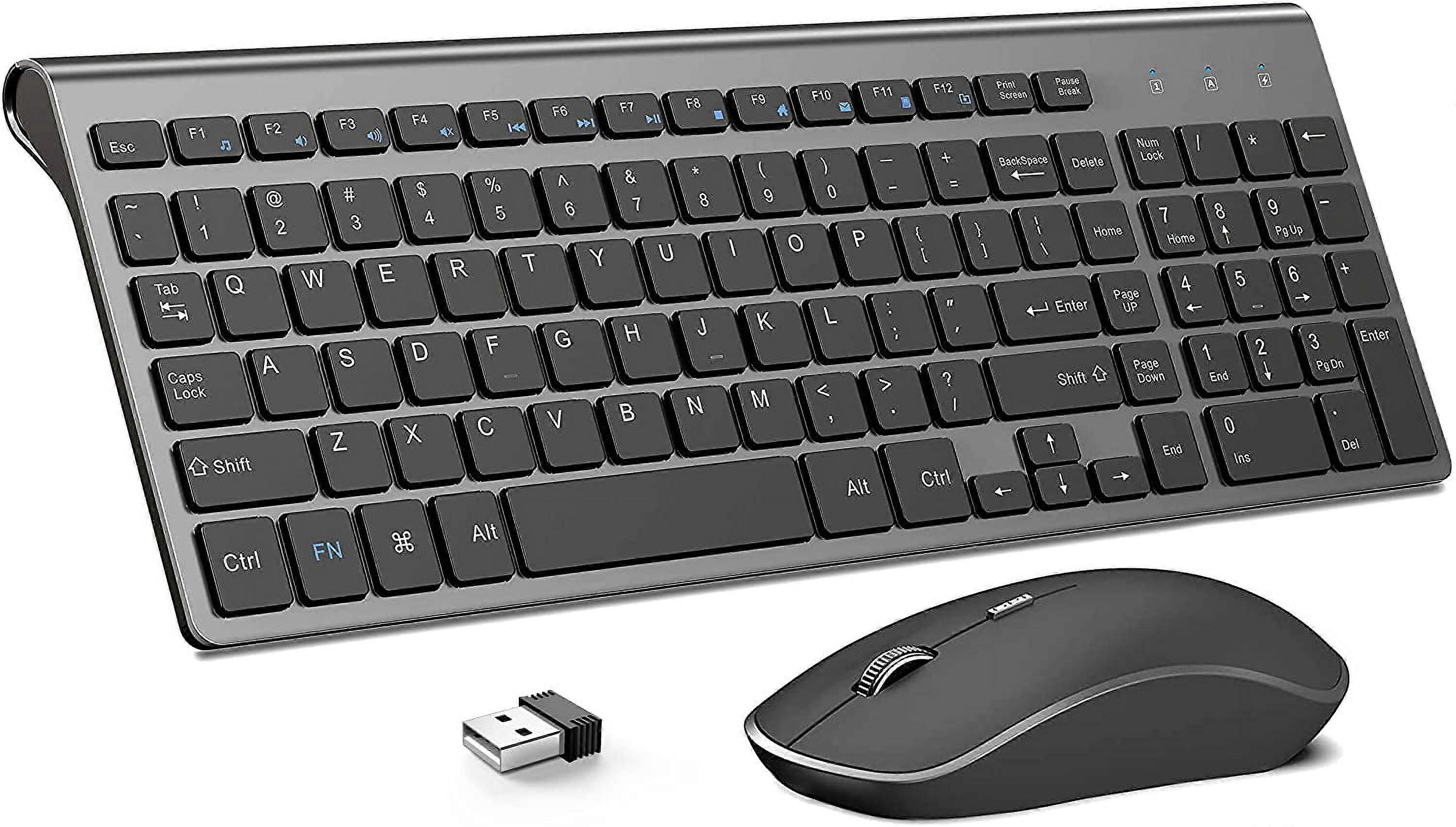 Wireless Keyboard and Mouse,2.4G Ergonomic and Slim Wireless Computer Keyboard Mouse Designed for Windows, PC, Laptop,Tablet - Black Grey
