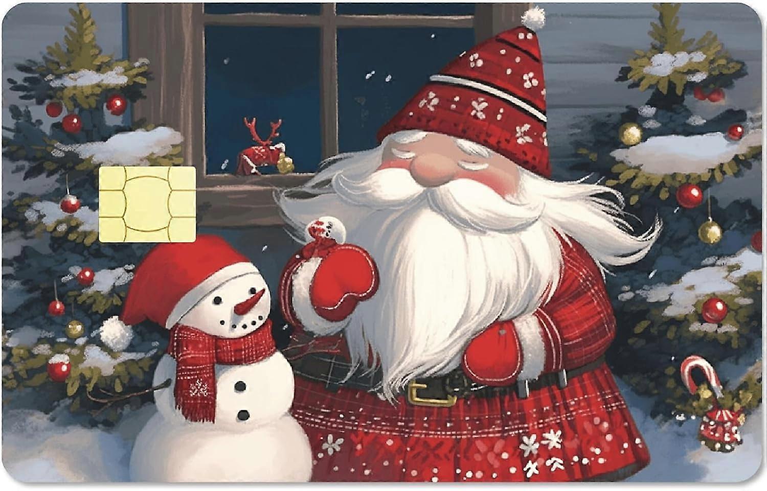 4Pcs Christmas Credit Card Stickers, Santa Claus Waterproof Matte Film 3.3x2.1in, Compatible with Bank Cards, Removable No Bubble Scratch Resistant