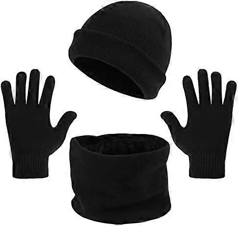Hat Scarf Gloves Set, Winter Thermal Knitted Beanie Hat Warmer Touchscreen Fleece Neck Warmer Neck for Men Women Outdoor