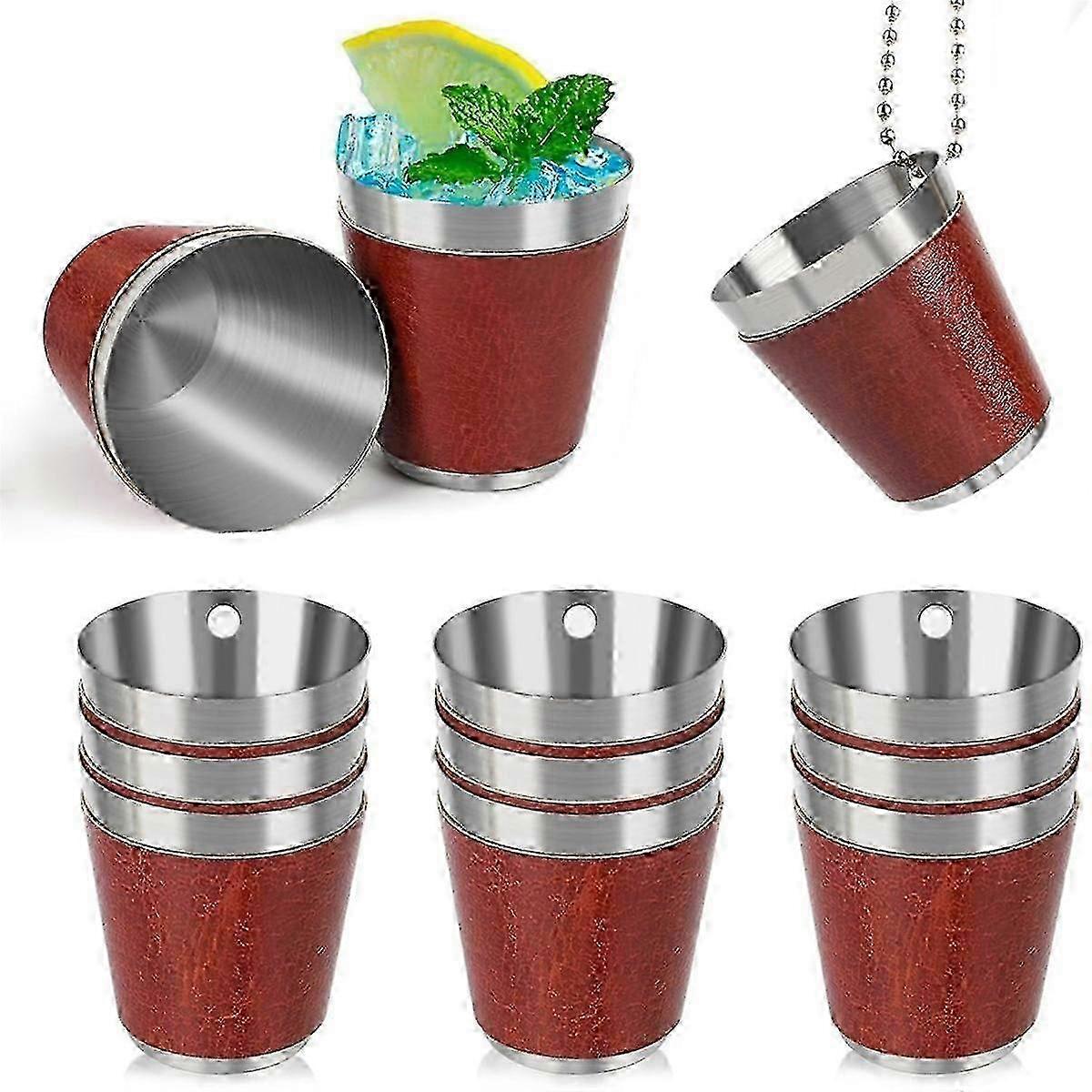 Stainless Steel Shot Glasses with Chain, Leather-Wrapped 30ml Hanging Shot Cups for Party Wedding Ac p
