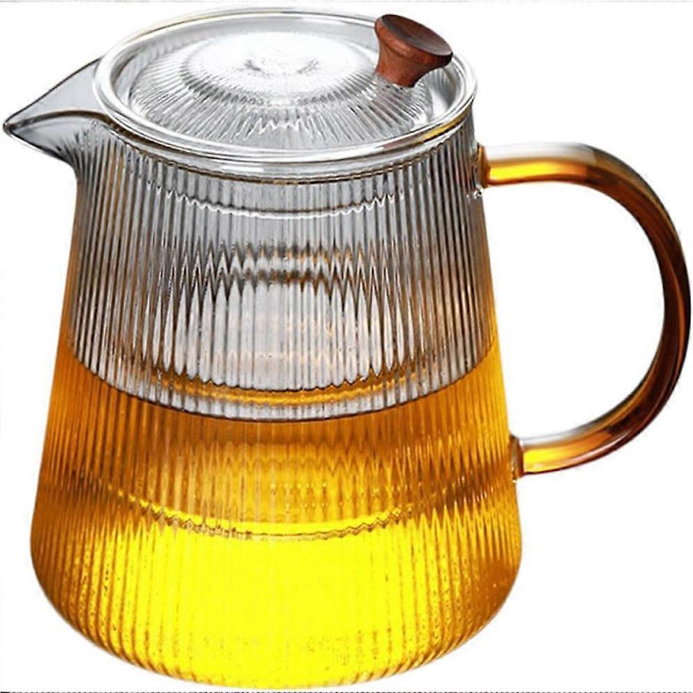 Teapot, striped glass with handle, thickened heat-resistant, 1000ml