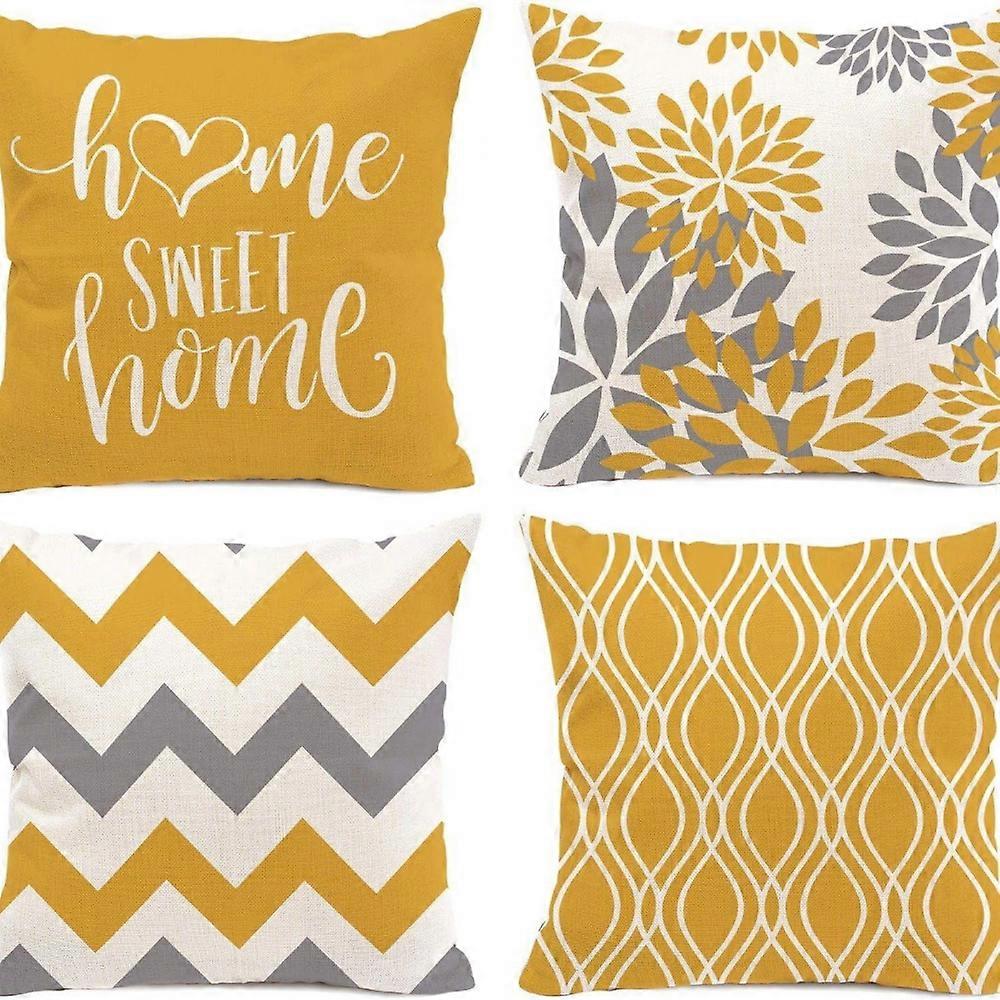 Cushion covers 45x45 cm, set of 4, decorative linen, yellow, for sofas