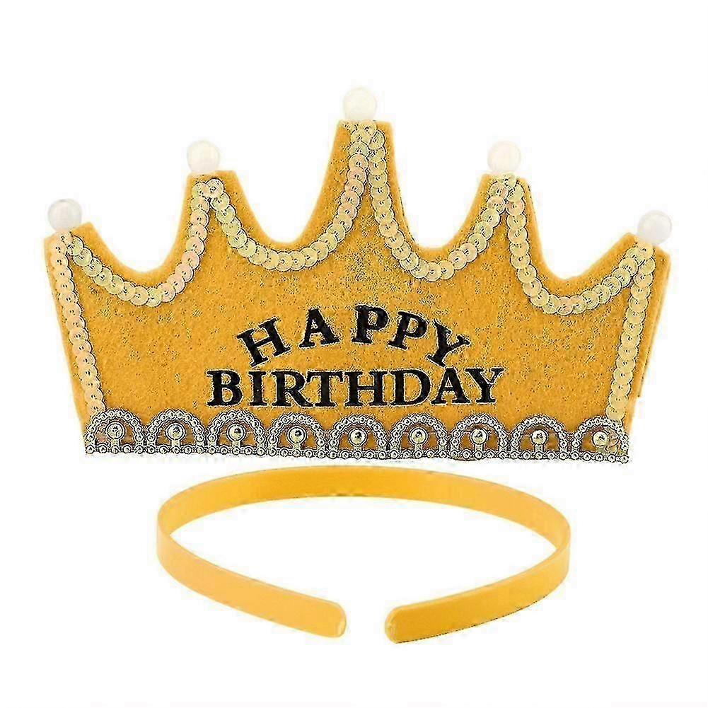 1pcs Diy Cute Handmade Birthday Illuminate Crown Cap (yellow)