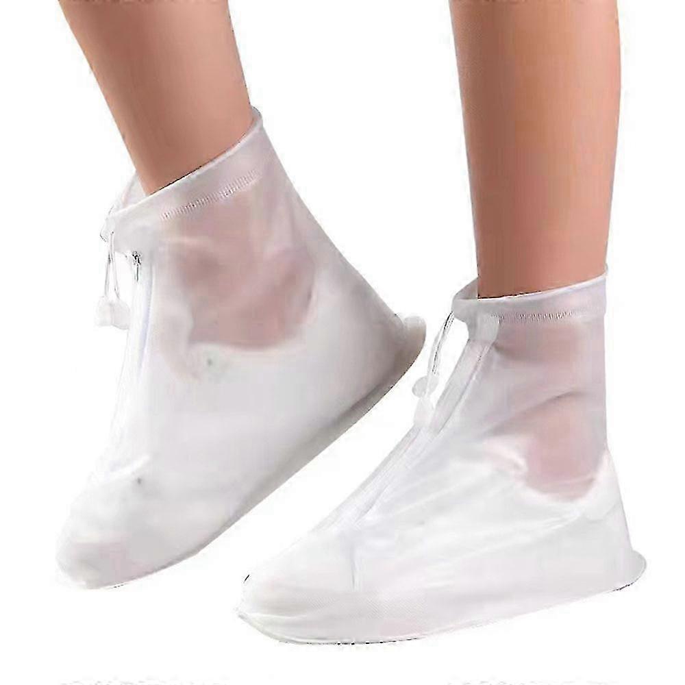 •Reliable Material: This waterproof rain shoes is made of high-quality PVC,and the sole part has anti-slip texture,which is waterproof and non-slip in rainy days,bringing you more comfort in rainy days •Easy to Wear: The shoe covers are equipped with zippers and drawstrings,making them easier to put on and take off. Just open the zipper and you can easily put on and take off the galoshes without excessive tearing •Easy to Carry: This rain shoe covers are lightweight and easy to fold into any shape. You can put it in your backpack and take it with you in case of emergencies •Clear Design: Transparent shoe covers can protect your shoes without blocking their shape,allowing you to fully display your shoes •Wide Application: Protect your shoes from rain and mud,suitable for various rain and snow weather,cycling,fishing,hiking and other occasions Specification: •Material: Environmentally friendly PVC •Weight: 190g •Size S: Length 25.5cm,suitable for size 34-35 •Size M: Length 26.5cm,suitable for size 36-37 •Size L: Length 28cm,suitable for size 38-40 •Size XL: Length 29cm,suitable for size 41-42 •Size XXL: Length 30.5cm,suitable for size 43-44 •Size XXXL: Length 32cm,suitable for size 45-46 •Thickness: 22 threads for upper,240 threads for sole •Features: Easy to store,wide mouth design Package included: •1 Pair x Waterproof Shoe Covers •Other things not included