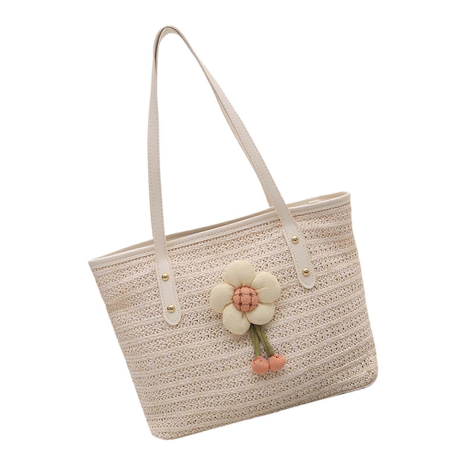 Women Straw Armpit Bag Beach Bag Stylish Shoulder Bag Vacation Bag Large Capacity Bag for Everyday White