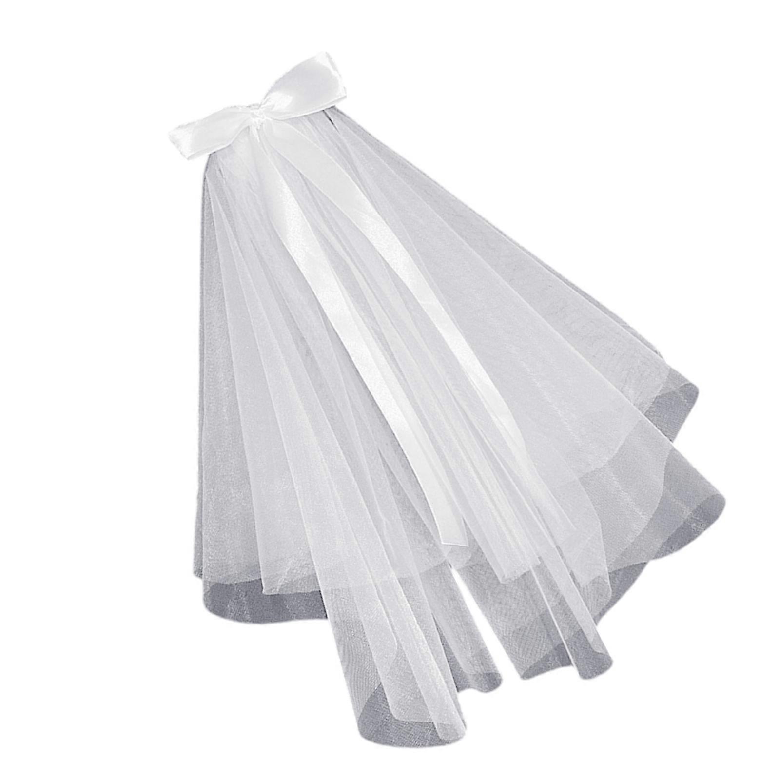Short White Bridal Veil with Ribbon Bowknot Short Tulle Bride Veil for Wedding Dress and Bridal Shower Multicolor