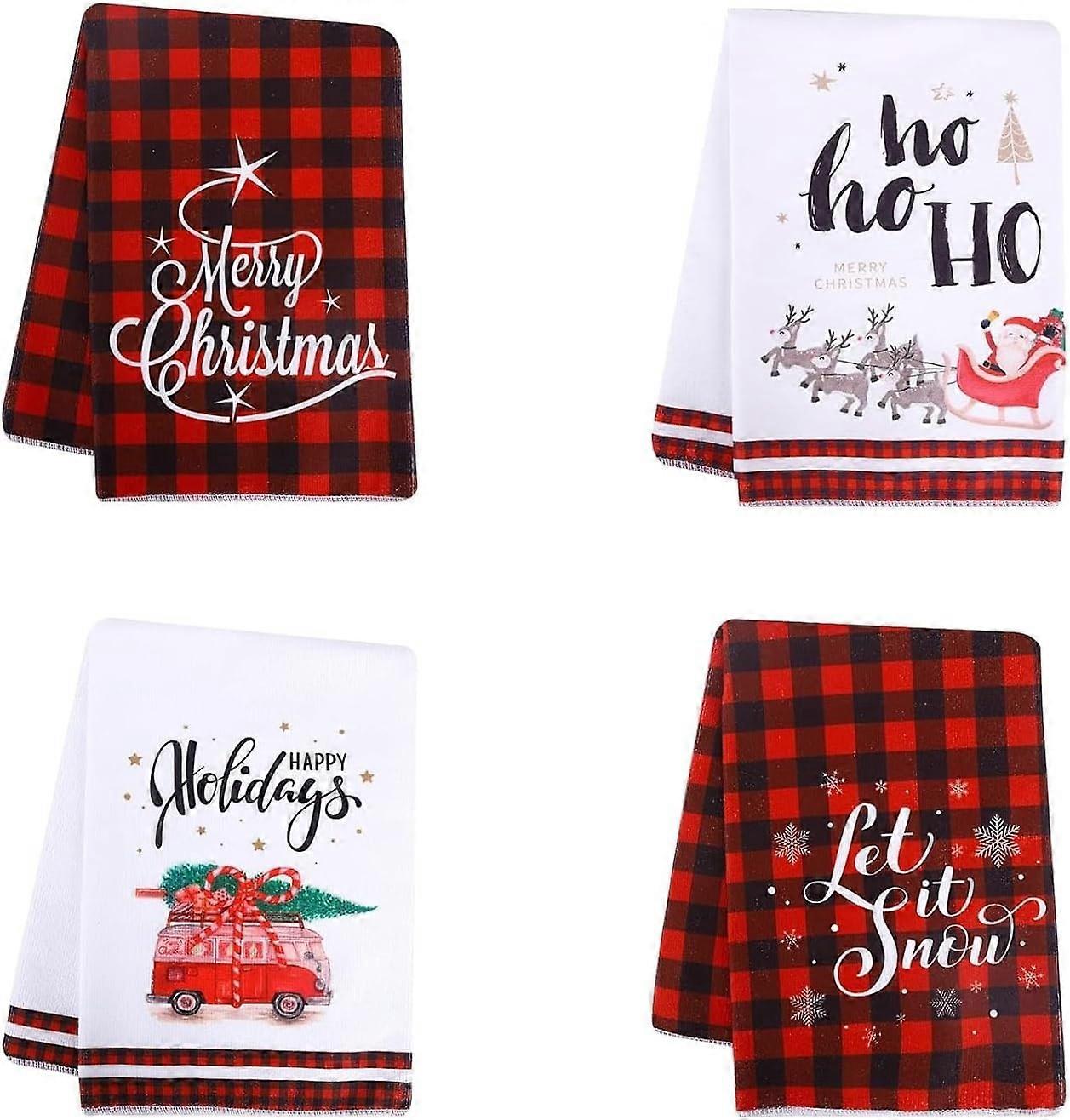 4 Pieces Christmas Tea Towels,45 x 60cm Microfibre Tea Towels,Christmas Hand Towels Super Absorbent Kitchen Towels