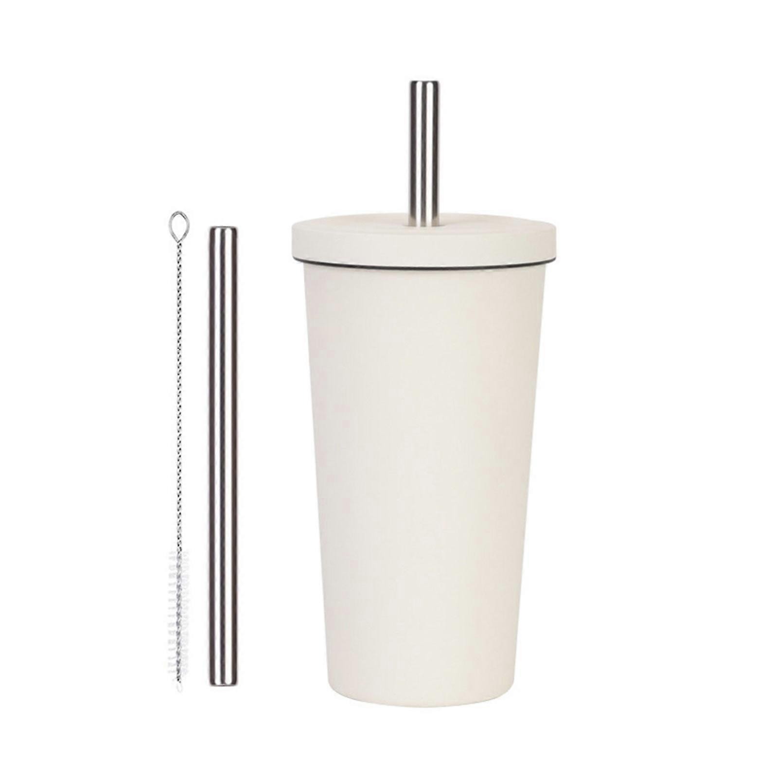 Ergonomic Vacuum Insulated Travel Drinkware 316L Stainless Steel Construction Leak Proof Straw Lid with Handle white