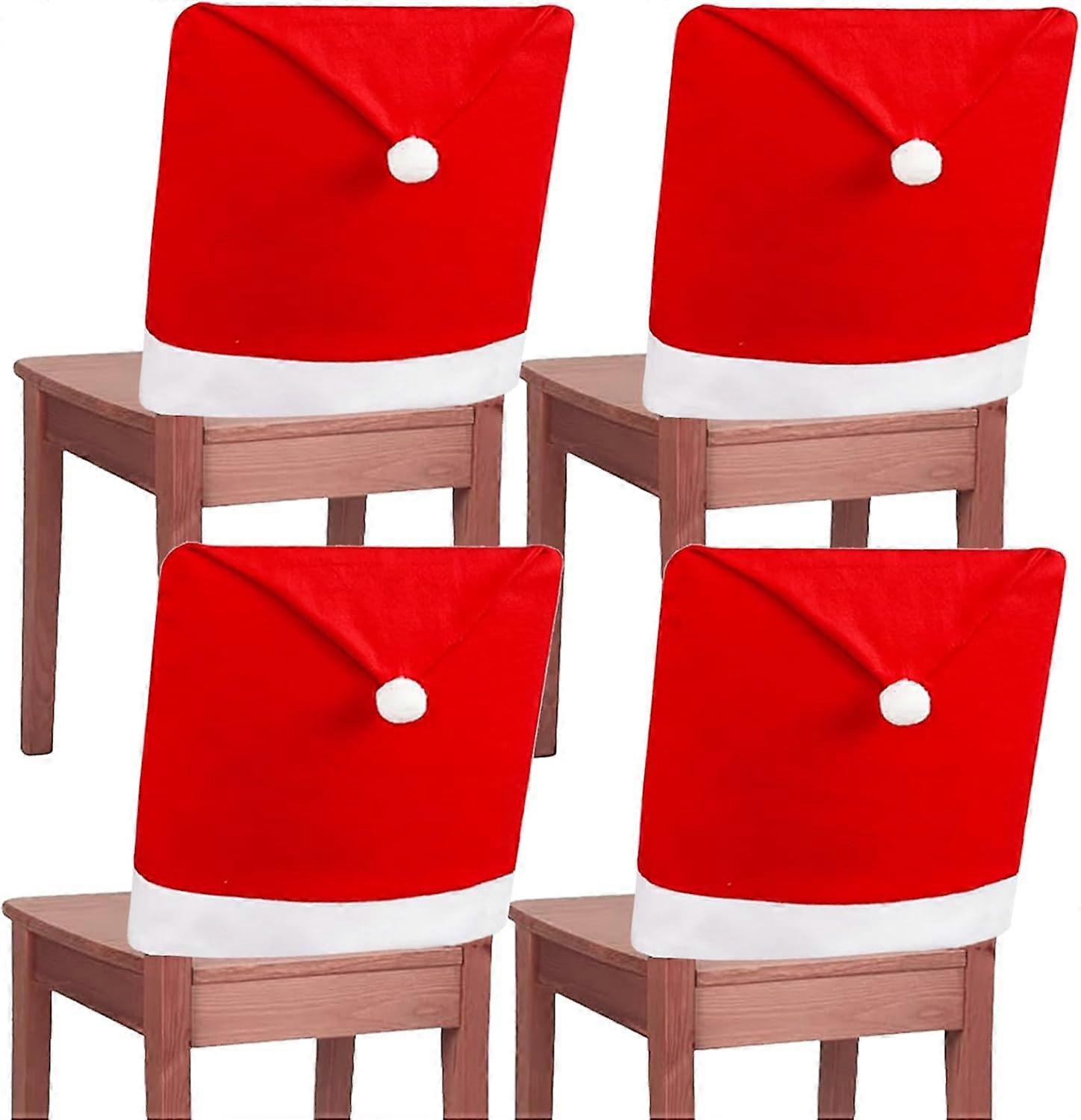 Christmas Chair Back Covers Set of 4,Xmas Dining Chair Covers Washable Santa Clause Hat Red Dining Chair Slipcovers