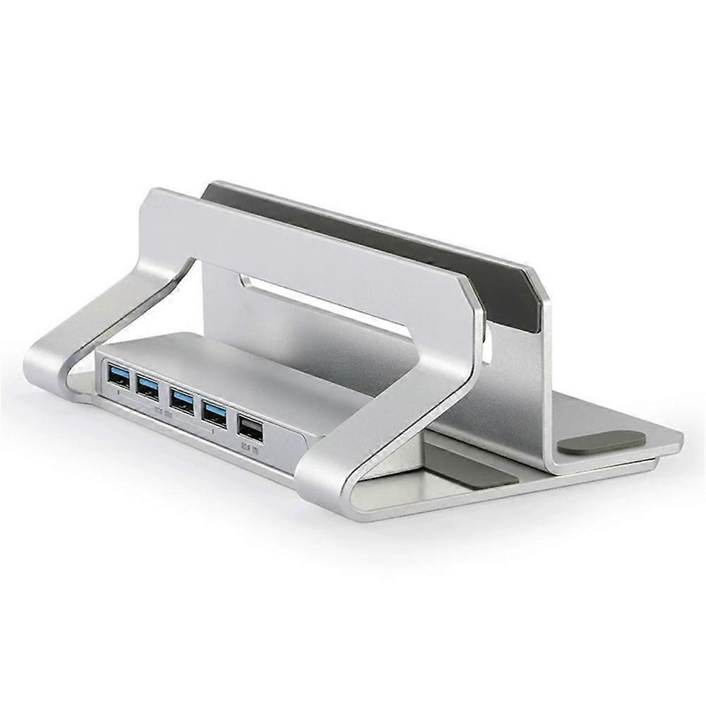 D051-3 Aluminum Alloy Desktop Organizer Vertical Laptop Stand with 4 USB Ports Hub