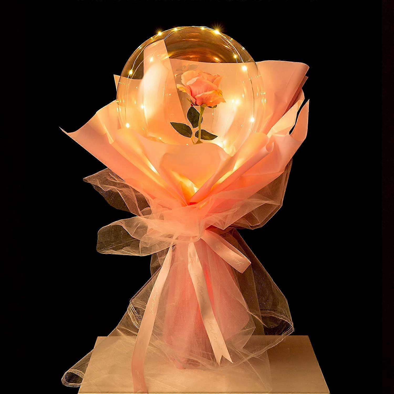 Luminous Balloon Rose Bouquet with LED Lights, Glow Bubble Balloons & String Lights for Women, Valentine's Day Birthday Gift