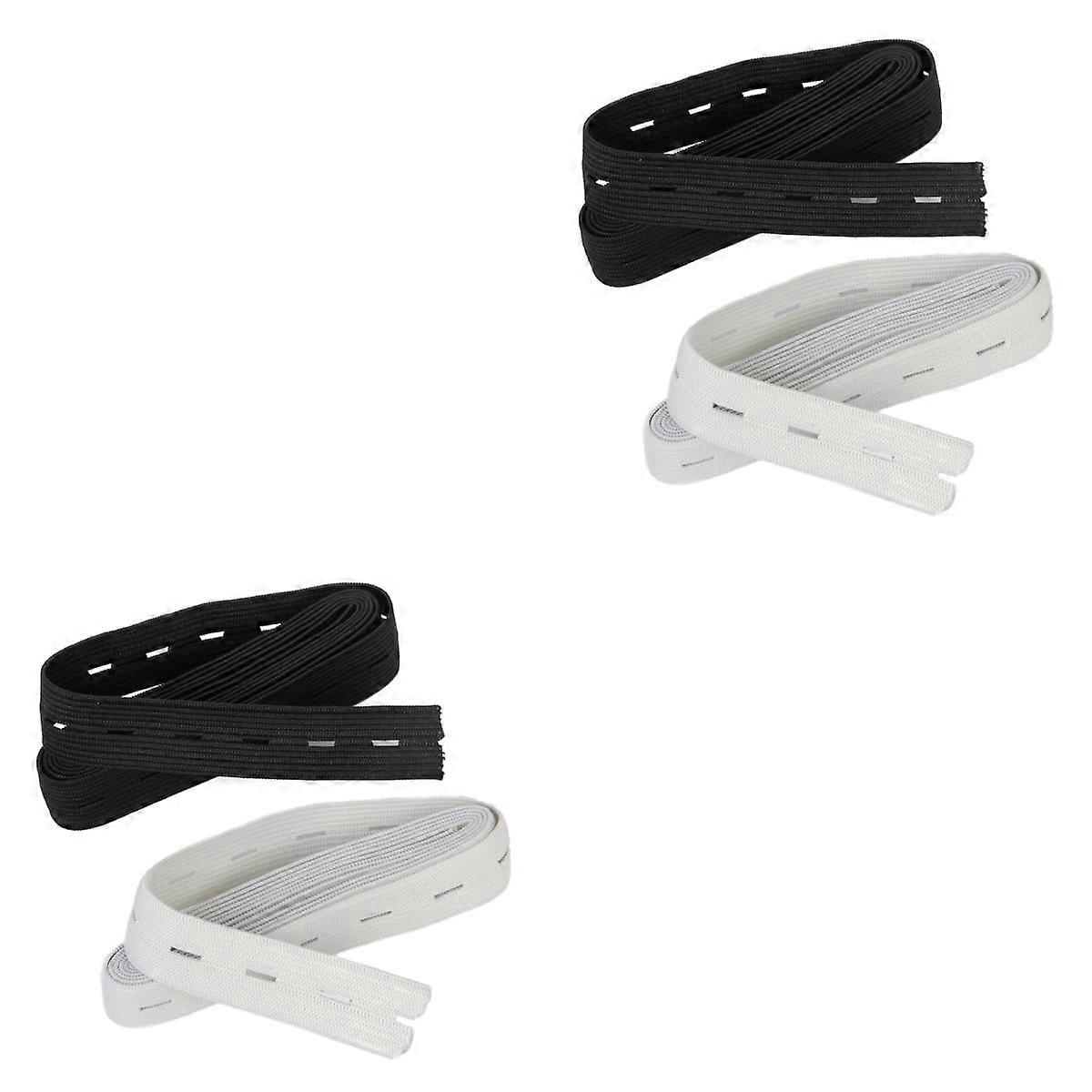 4 pcs 1.5M Sewing Button Hole Knit Elastic Band Waistband (White+Black)