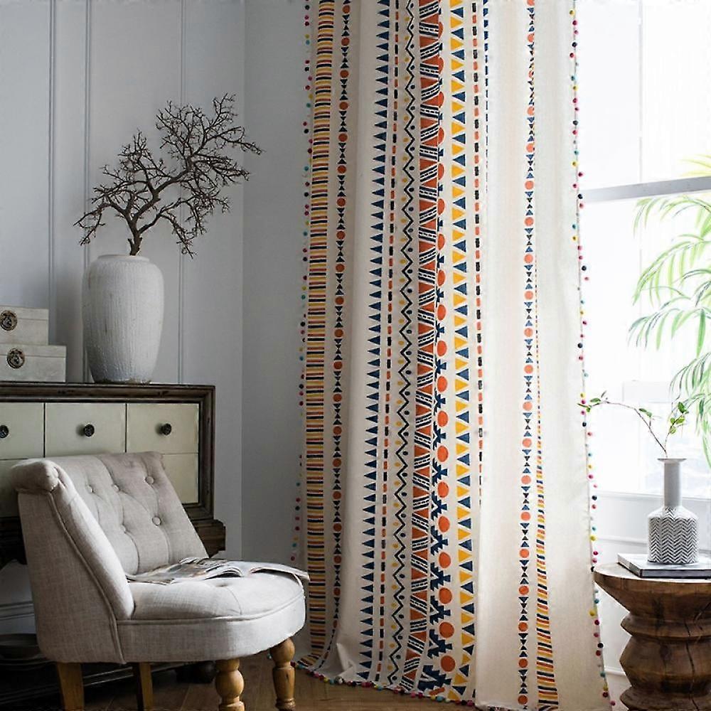Bohemian Cotton Linen Curtains with Tassels, Semi-Shading Fringed Rod Style for Kitchen, Bedroom, Study - Compatible with Boho Home Decor