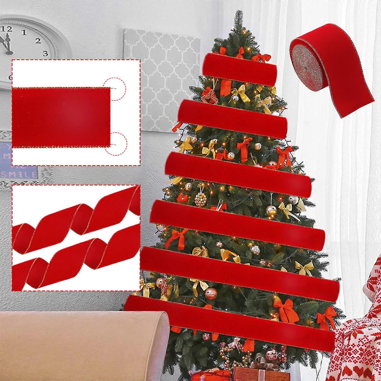 Red Bows Christmas Decorations Plush Ribbon for Tree, Ambiance, Gifts - Compatible with Christmas Decor