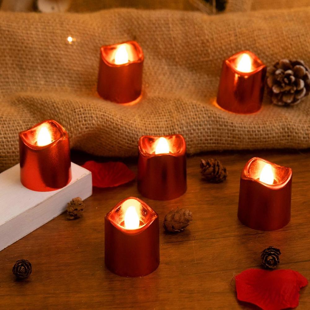 6 Pcs Red Flameless Votive Candles,Battery Operated Glitter LED Tea Light Candles for Party,Table,Wedding,Christmas