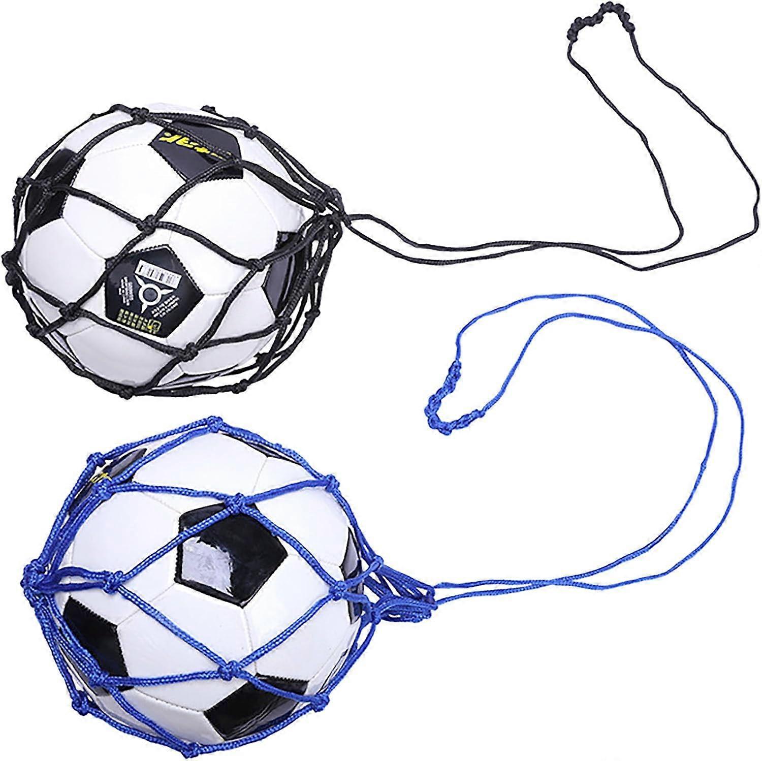 2 Pcs Football Bags, Black and Blue Net Drawstring Ball Bags for Storage Football Black Medium