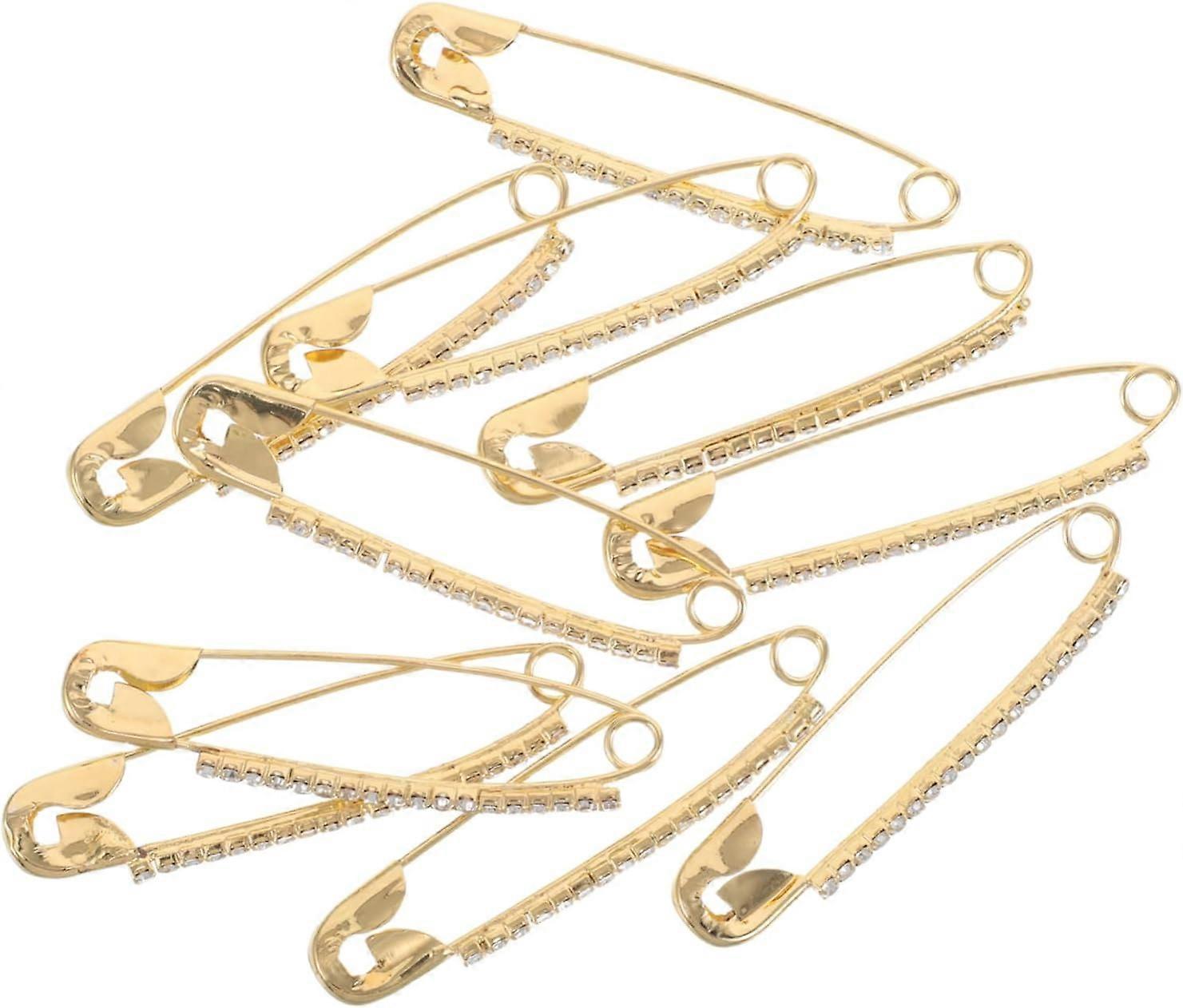 10pcs Rhinestone Safety Pins: U Shaped Crystal Brooch Pins Decorative Clothing Decoration for Women Clothes Dress Cardigan Accessories Golden