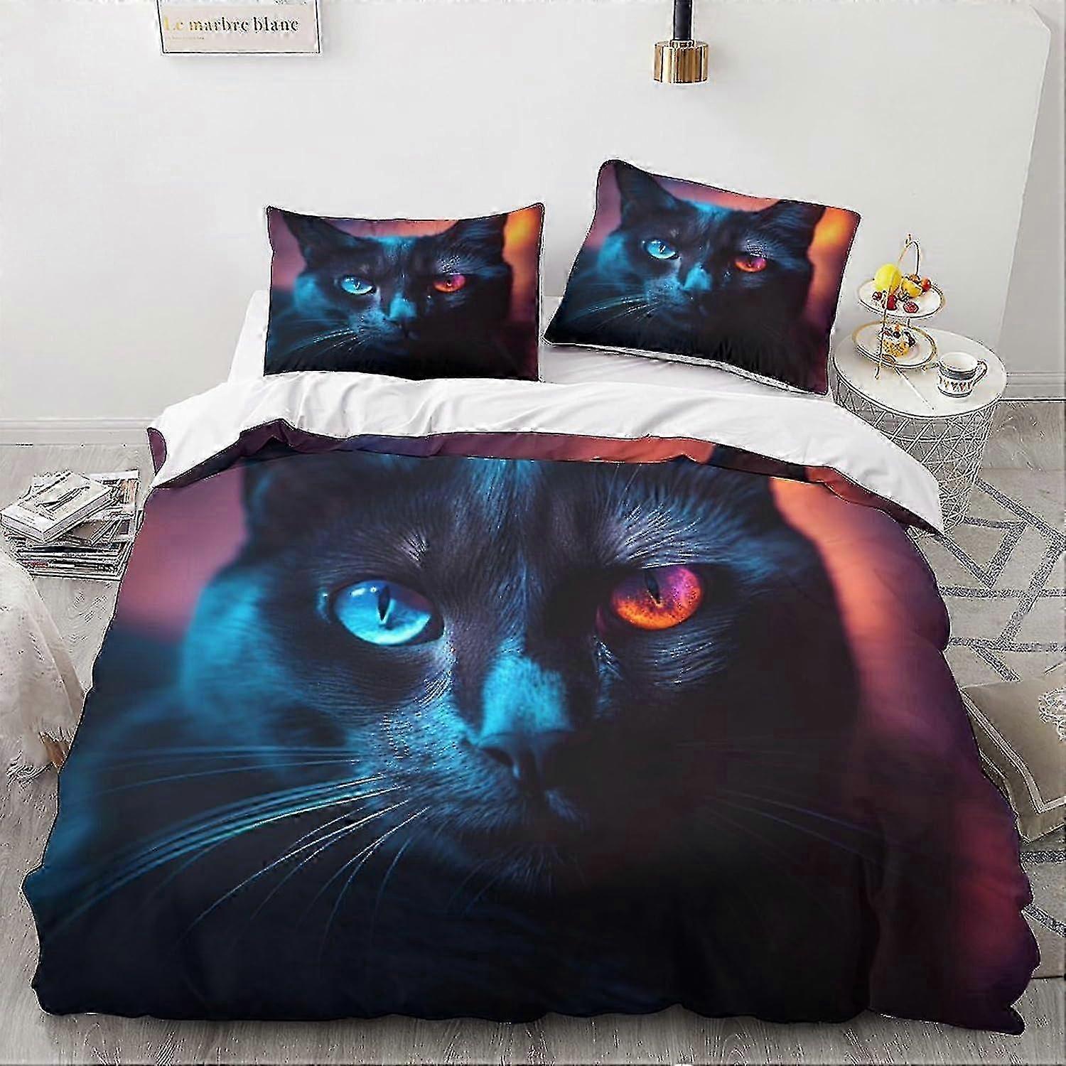 LikeEj Cat Duvet Cover Microfiber Bedding Set, 3D Print Anime Duvet Quilt Cover&Pillowcase With Zipper Closure, Winter Soft Cute Duvet