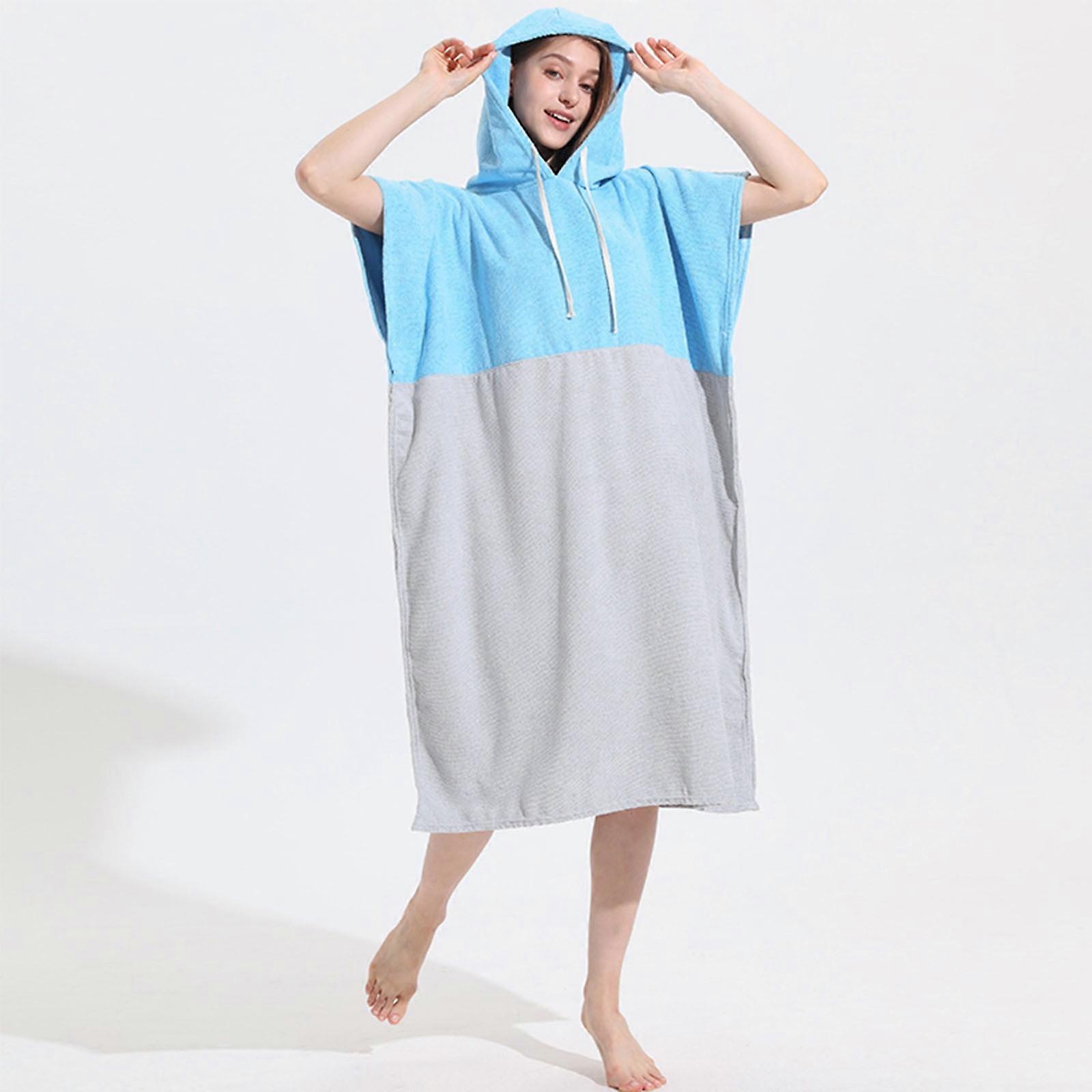 EQWLJWE Surfing Changing Robe with Hood,Quick Dry Wetsuit Changing Bath Robe Color Block Beach Towel with Pocket for Mens Womens Gift Light Blue