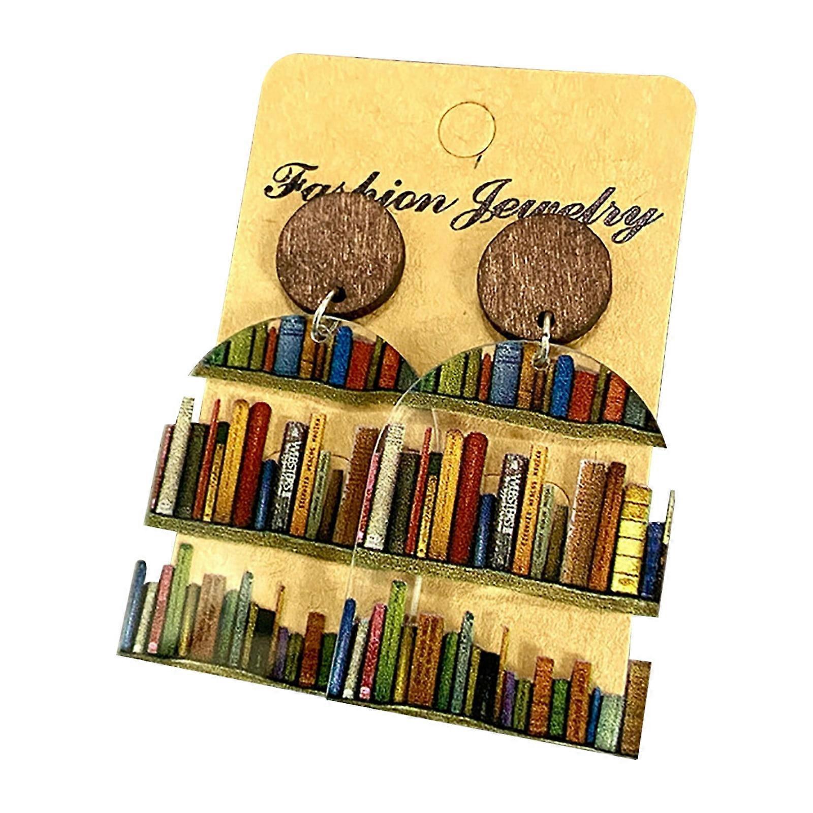 Valentines Day Gifts Savings Deals! WJSXC Book Lover Earrings, Classic Water Drop Round Square Stitching Bookcase Teacher Earrings A
