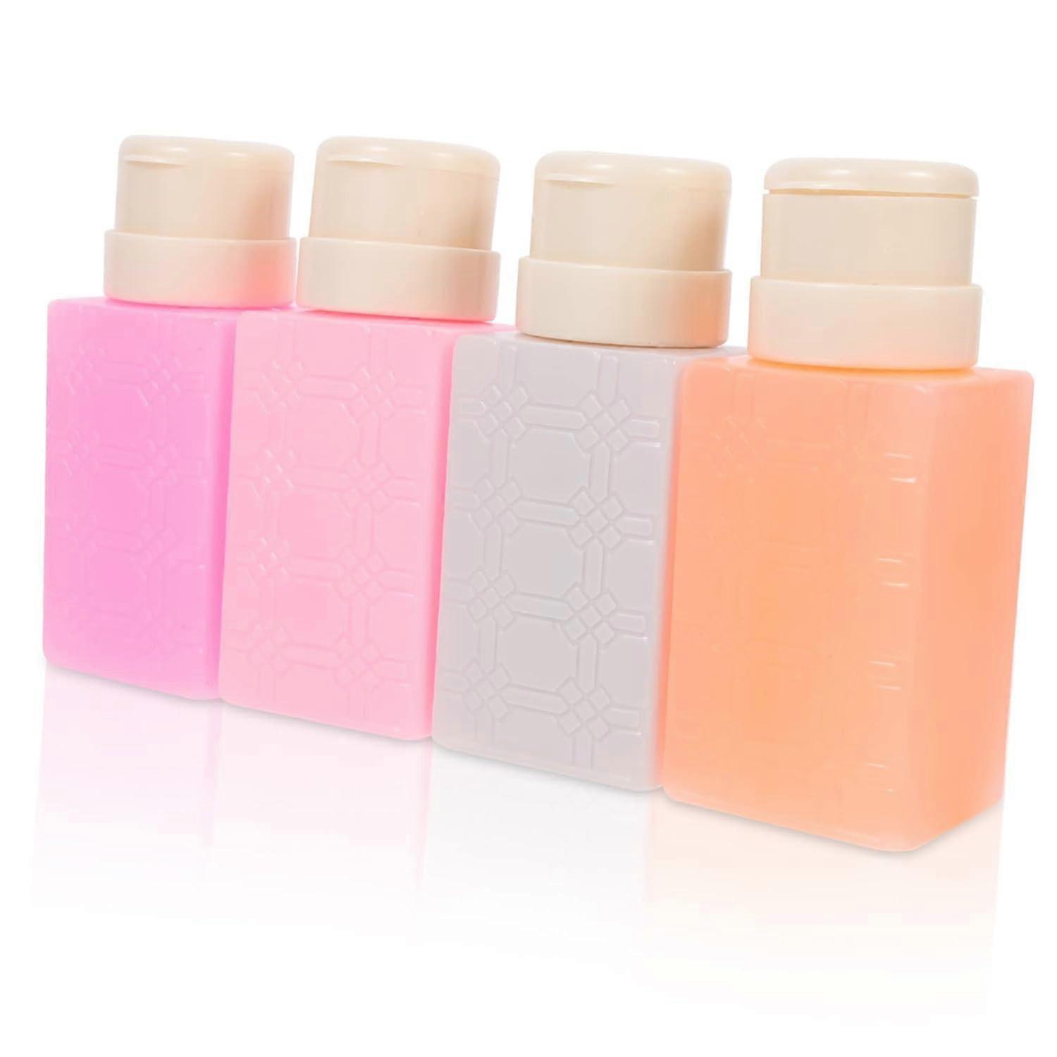 4Pcs Push Down Empty Bottle Dispenser Refillable Pump Bottles for Nail Polish Remover Liquid Dispensing Bottles Manicure Pump Bottles Pressing Bottles