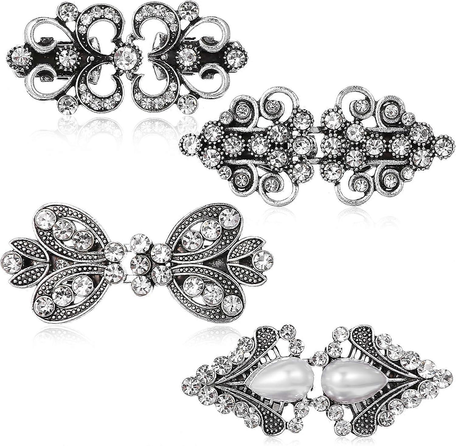 4Pcs Vintage Cinch Clip, Retro Swirl Clip, Silver Shawl Pins for Cardigans to Hold Sweater Together, Shawl Collar Clasp Dress Shirt for Girls, Women