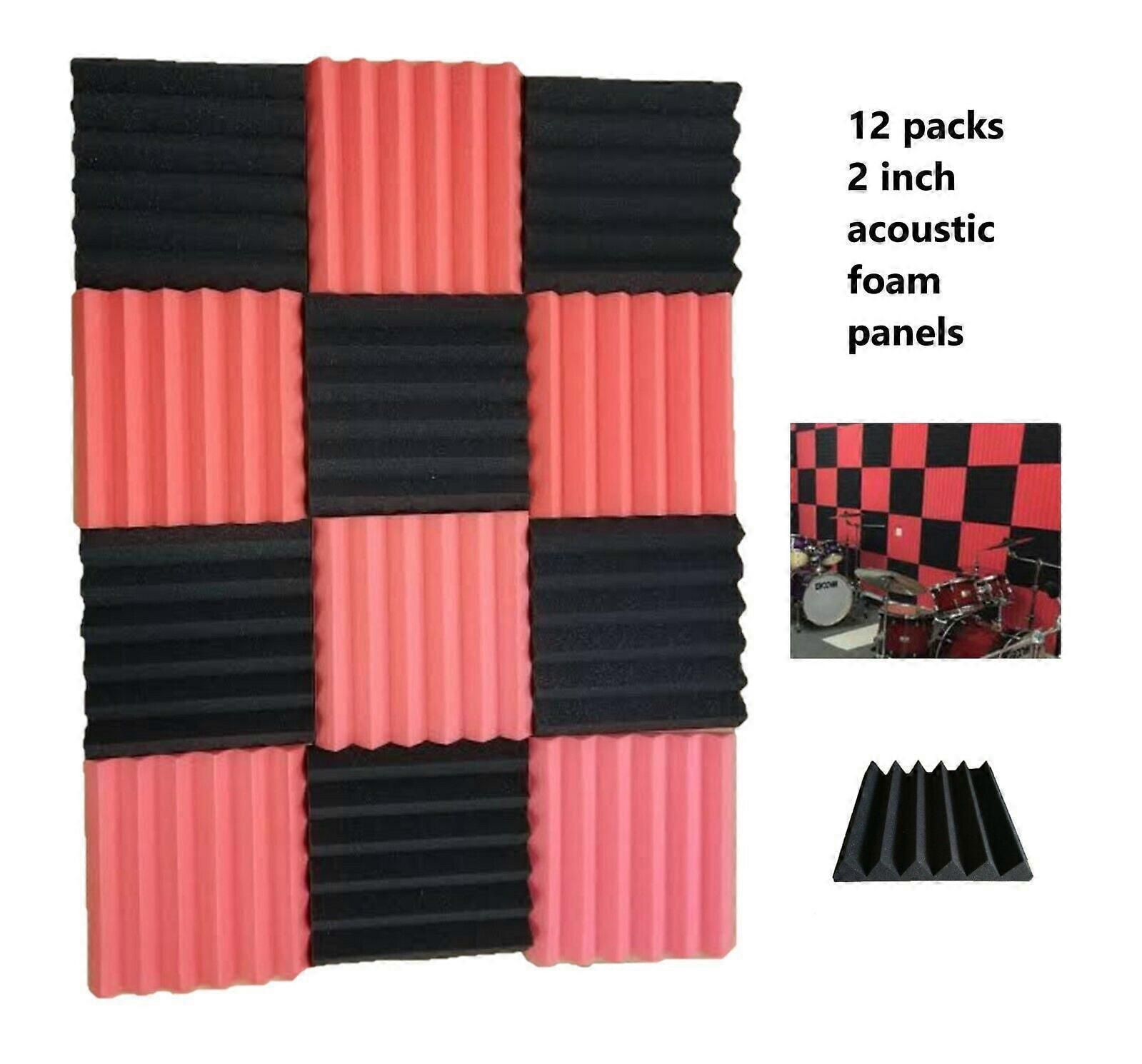 12 Pack Wedge Premium Acoustic Soundproofing Studio Foam Tiles 12" x 12" x 2" Charcoal+Red