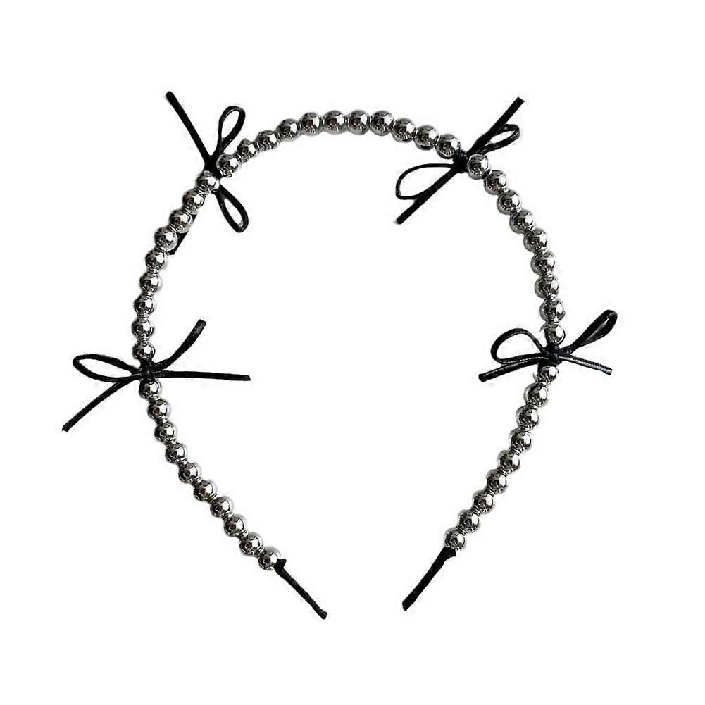 3 Pcs Silver Beaded Headband Metallic Bead Bow Hair Band Fashion Hair Hoop Hair Accessories for Women and Girls