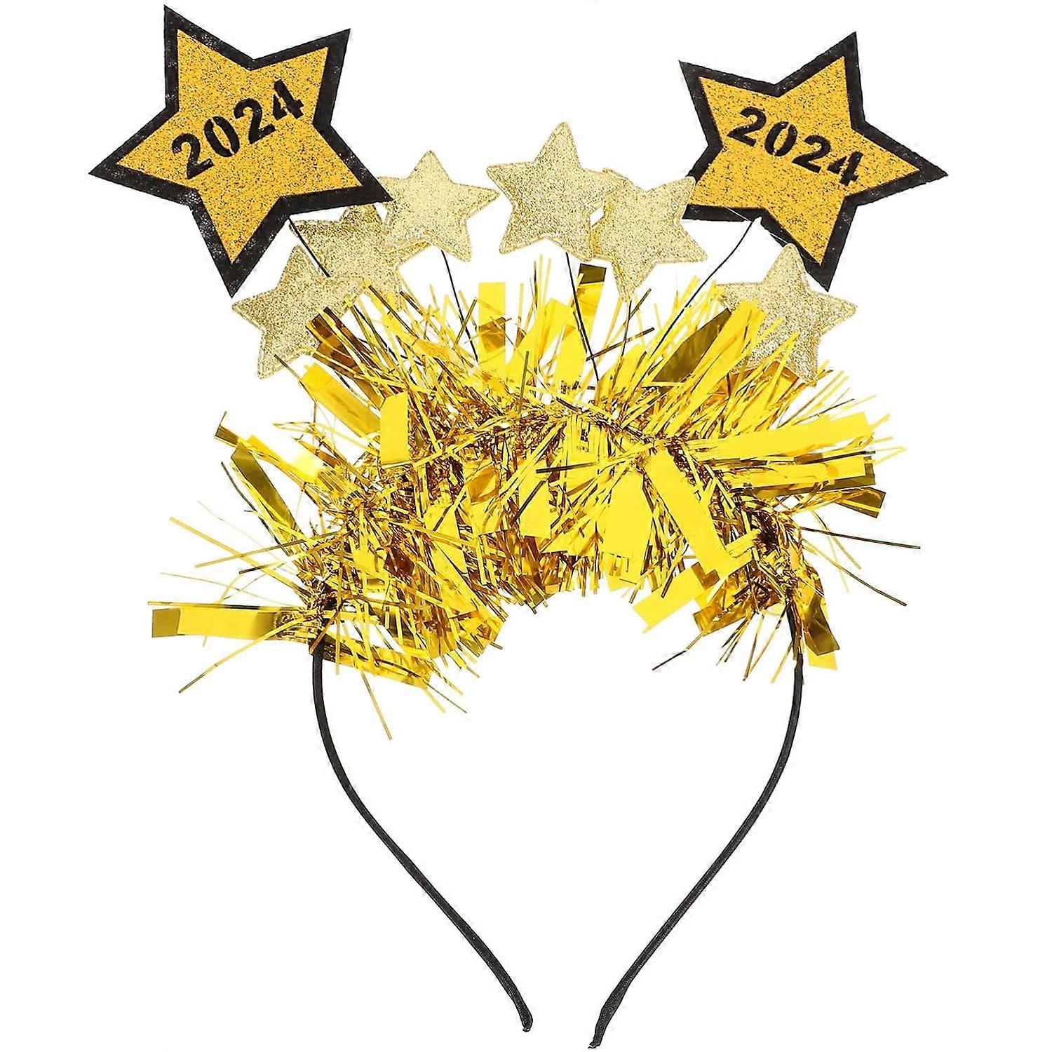 Happy New Year Headbands, 2024 New Year Headband Tinsel for Women, New Year Eve Headwear Hair Hoops Accessories,Photobooth Props