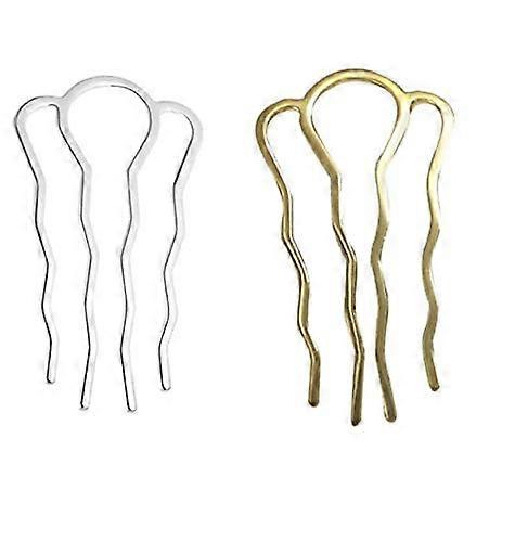 2PCS 4 Teeth Metal Hair Combs Pins Side Updo Hair Forks Long Clips for Women's Hair Styling Accessories (Gold and Silver)
