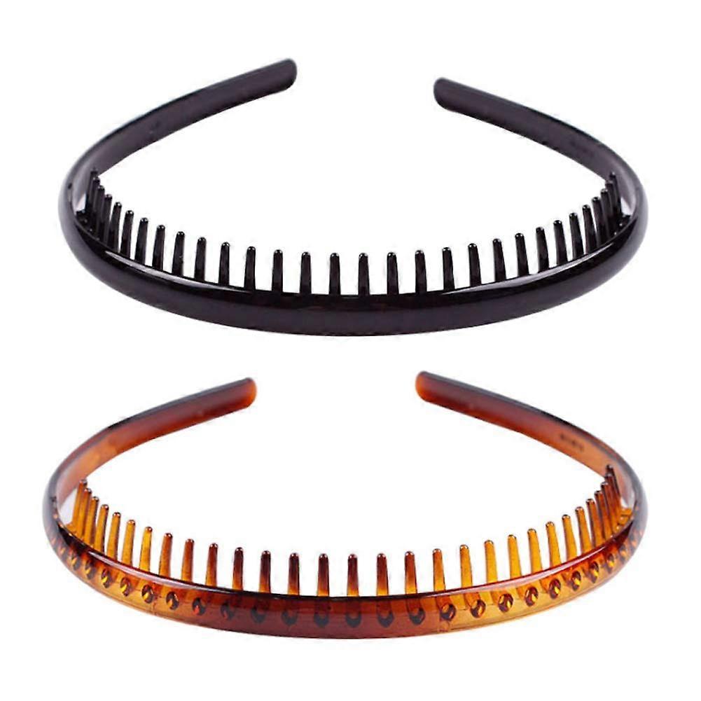 Set of 2 Fashion Plastic Headband Teeth Comb Hairband Hair Hoop Accessory for Women's Lady Girls (Black +Brown)