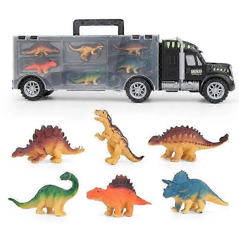 Dinosaur Transporter Truck Toy with 6 Realistic Dinosaur Figures for Boys and Girls to Enjoy Playtime