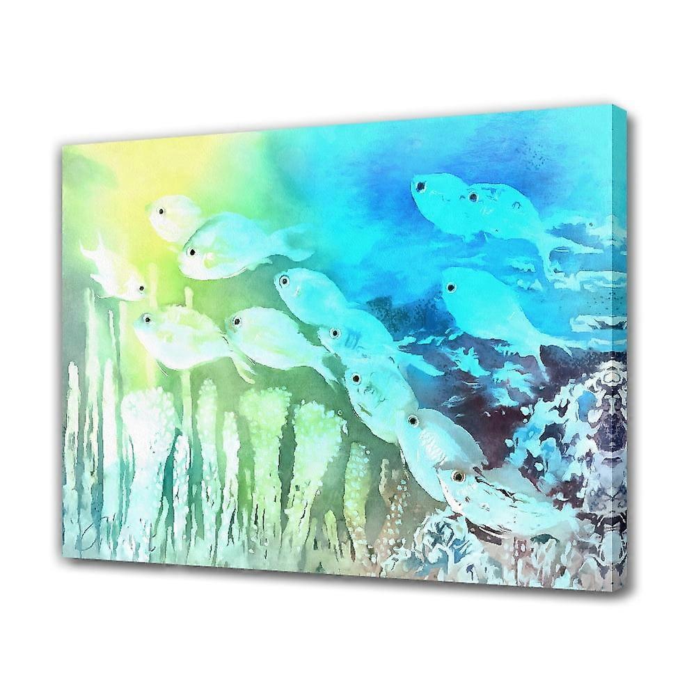 A Group Of Fish Swimming In The Ocean Poster Decorative Painting Canvas Wall Art Living Room Posters Bedroom Painting,Frame-style,12x18inch(30x45cm)