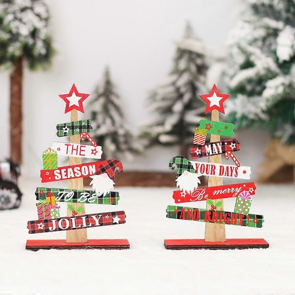 2 Pack Christmas Tree Table Decorations Signs Wooden Table Toppers with Xmas Theme Shaped Ornaments for Winter Christmas Party Table Top Decoration