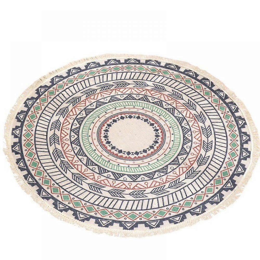 Round Boho Bathroom Rugs 90cm Diameter Vintage Mandala Velvet Accent Throw Rugs Soft Non-Slip Circle Mat for Bedroom Living Room