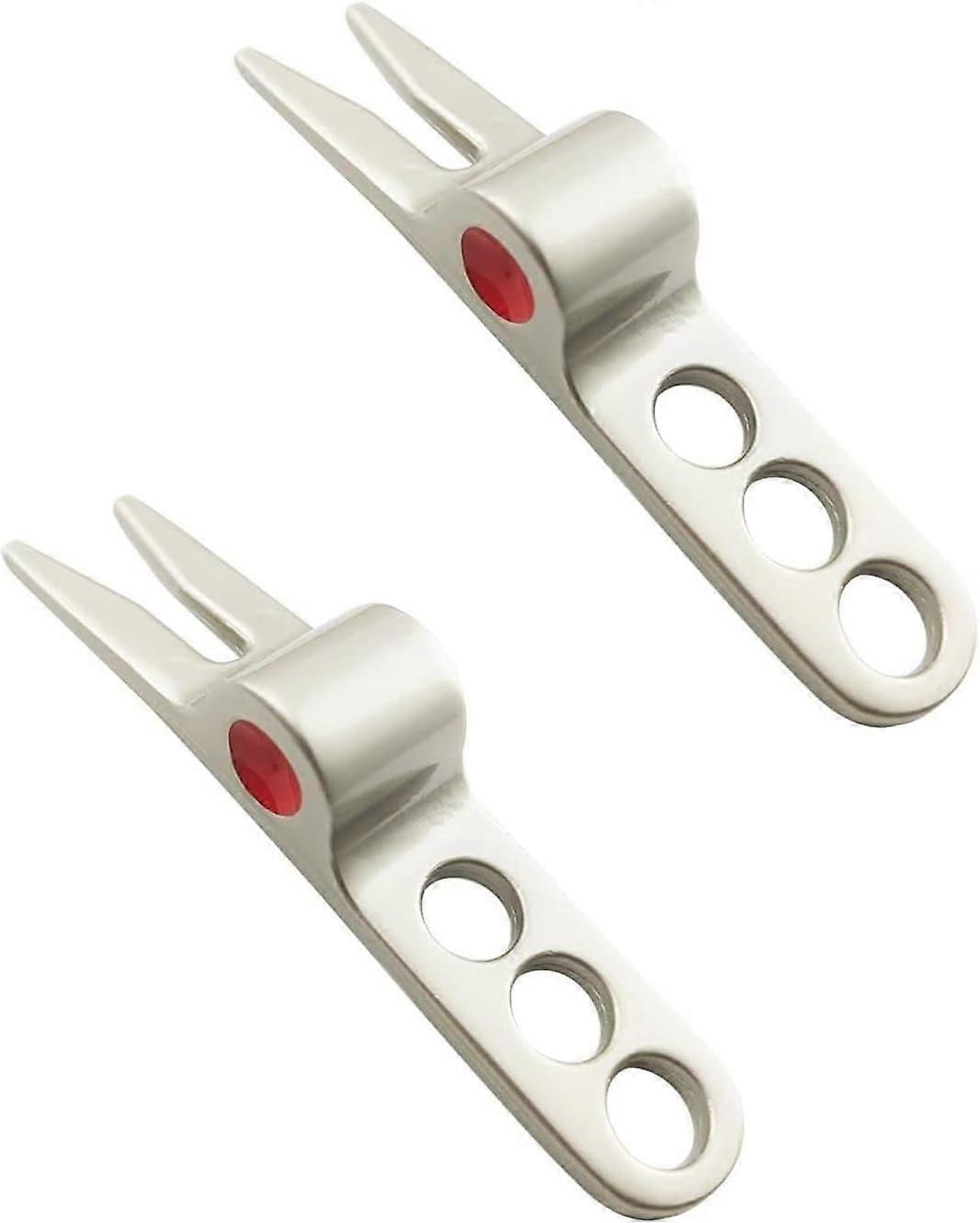 2Pcs Silver Golf Divot Repair Tool,Portable Golf Green Divot Fork Tool,Golf Ball Fork Pivot Divot Repair Tool,Compatible for Divot Tools
