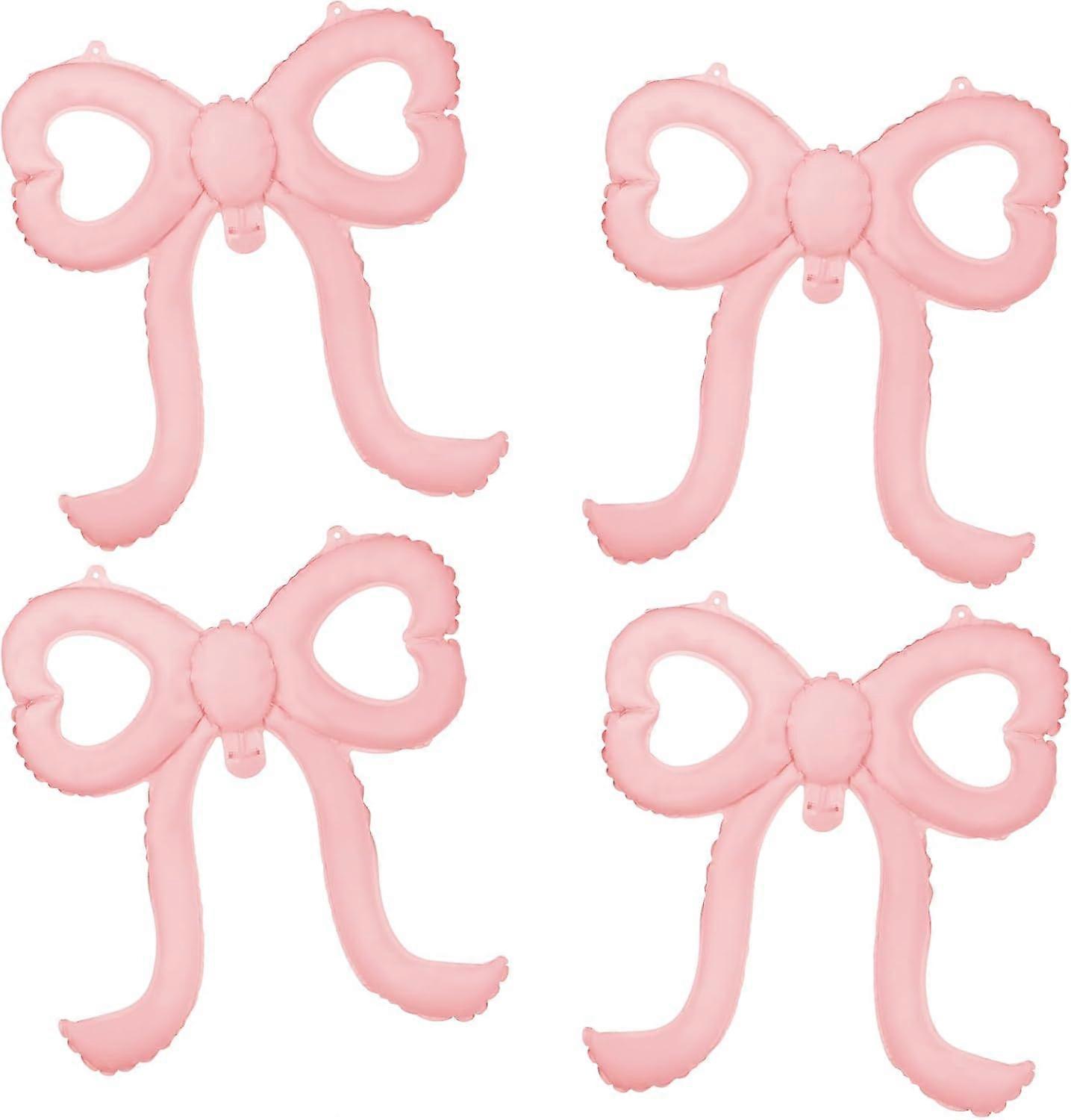 4 PCS Pink Bow Balloon,21”Bow Heart Aluminum Foil Balloons,Bow Themed Party Decorations for Birthday, Baby Shower, Wedding, Bridal,